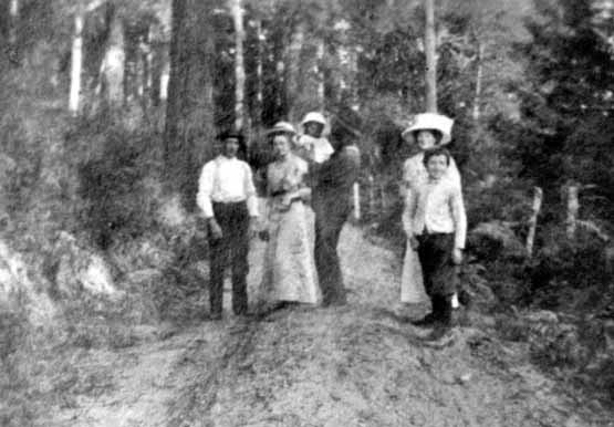 From left: Douglass McLennan, Mr and Mrs Bulman and child, Maggie, Findlay standing on Beaver Point Road.