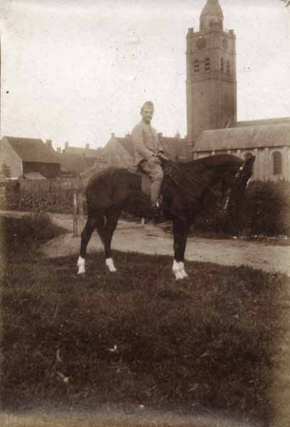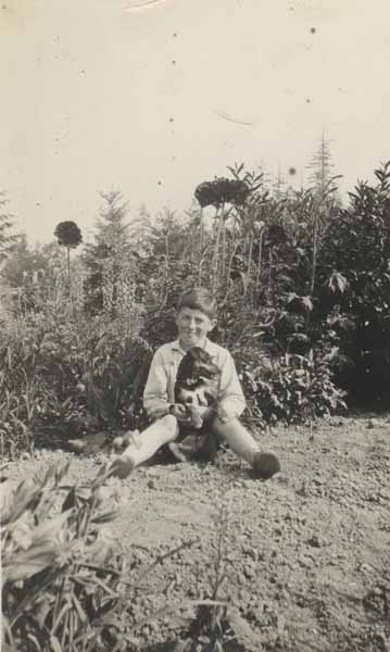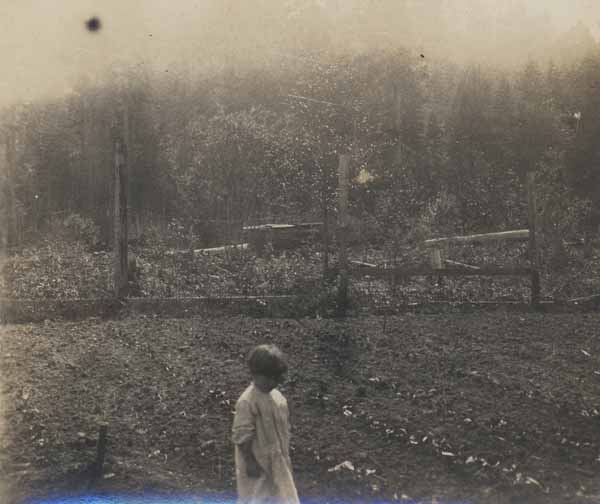Pierrot dans le jardin d'un coté les corns et l'autre les fleurs (little Pierre in the garden with corn on side and flowers on the other)