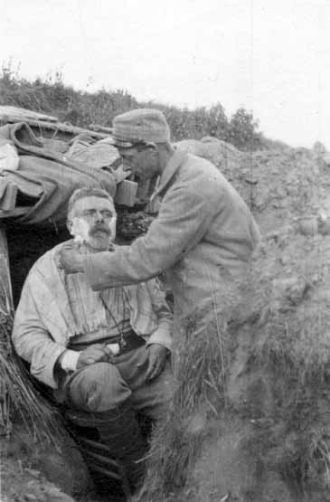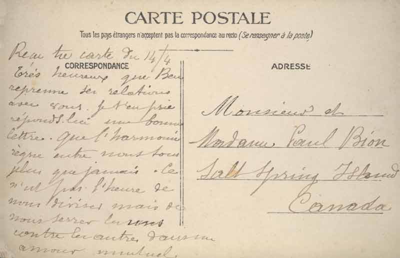 From Left to Right: Pierre Felix Bion (Paul's father), Nancy Bion (wife of Edouard Bion, Paul's brother), Paul Bion. Taken at Vergèze, Gard, in June 1916. (Note courtesy of Peter Bion 2011)