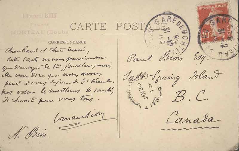 Maria Bion's brother-in-law François Chantelu and his wife Palmyra (Maria Bion's sister), with their girls Simone and Paulette, taken in France before travelling to Canada.