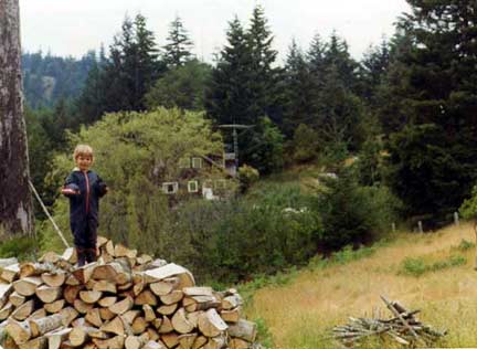 Bruce Campbell splitting wood at 651 Stewart Rd. (circa 1975)