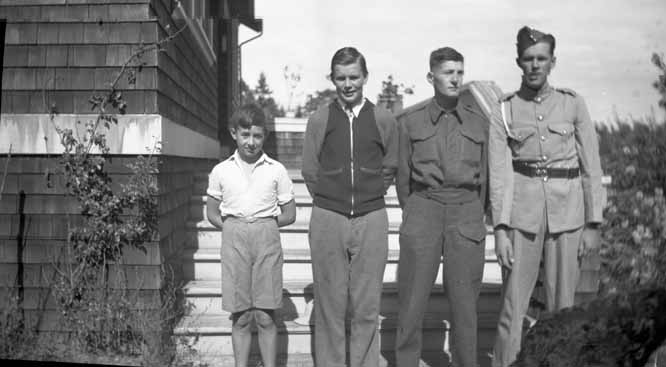 Louis Drake (1929-1987), Colvin Drake (1924-1992), Bruce Drake (1923-1943) in his Scottish battalion uniform and Vernon Drake (1921-2013) in his WWII Canadian Forces uniform.