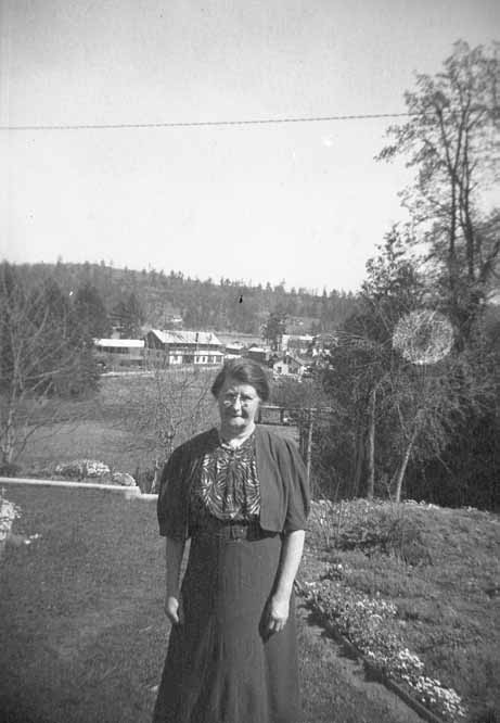 Jane (Manson) Mouat with Jessie (Mouat) Toynbee holding nephew Arthur Wood, outside Jane’s boarding house in Ganges.