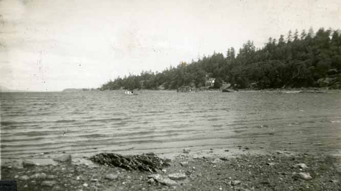 View from the beach near the intersection of the Fulford Ganges Road and Drake Road, looking toward Beddis Road.