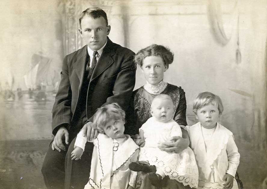 Gilbert James Mouat (1886-1946) and Belle (Nightingale) Mouat (1890-1950) and their sons (l-r) Bill (1910-2004), Colin (1911-1987) and Laurie (1908-1979).