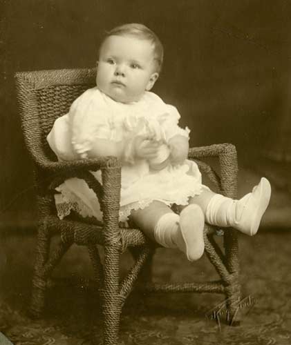 I think this might be Genevieve Akerman (b 1905) or Joseph Akerman (b 1907) as a baby (compare to photo #2013028086c). Perhaps their younger sister Violet (b 1910).