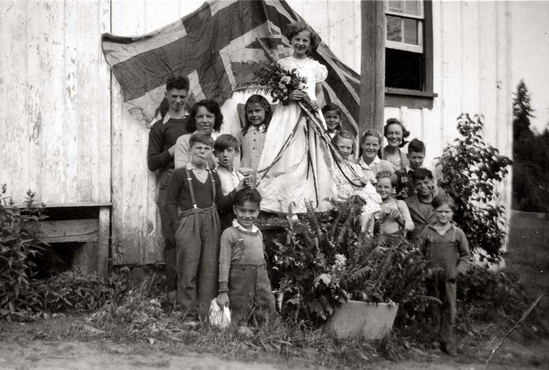 Next Row: Margaurite Harris, Gladys Forsen (with flowers), Mary Alice Lassiter, Jacqueline Twa, Miss A. Ripley, teacher; Roy McCallum