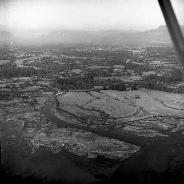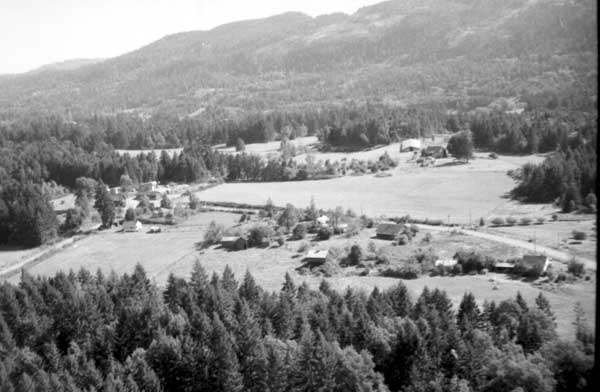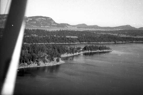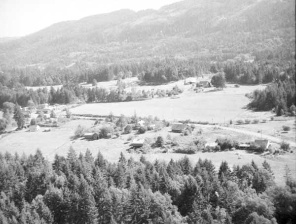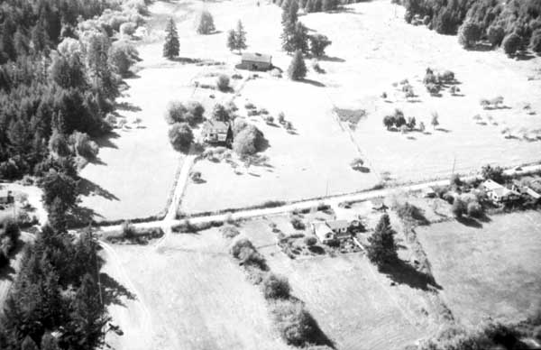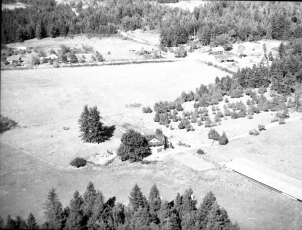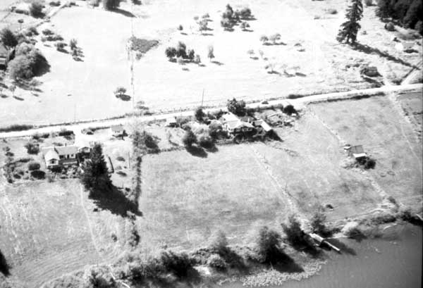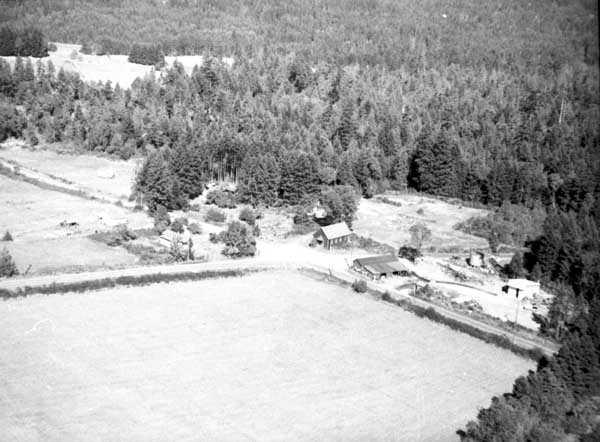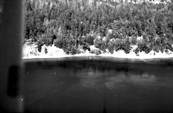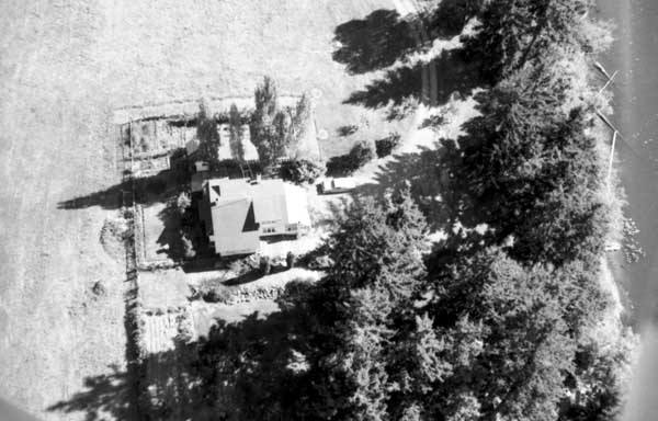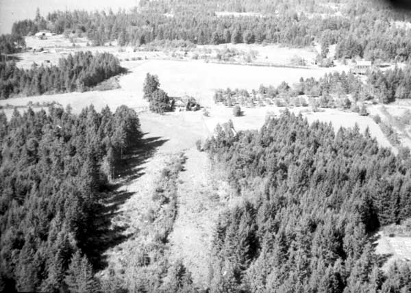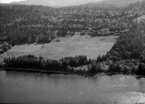 Resort at 1136 North End Road (currently Cedar Beach Resort) on the right. Resort at 1170 North End Road (currently St. Mary Lake Resort) and its boathouse in the centre
