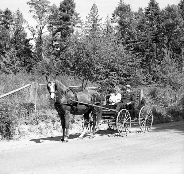 Premier W.A.C.Bennett was taken for a ride last Saturday afternoon. Mr. Bennett enjoyed a drive with Mrs. Warren Hastings in her horse and buggy making an old-fashioned but pleasant picture as they drove down the wooded road, along the Upper Ganges Road. Mrs. Hastings reported the Premier had enjoyed his drive and that he was even more convinced of the importance of keeping our island charm as much as possible as it is at present.