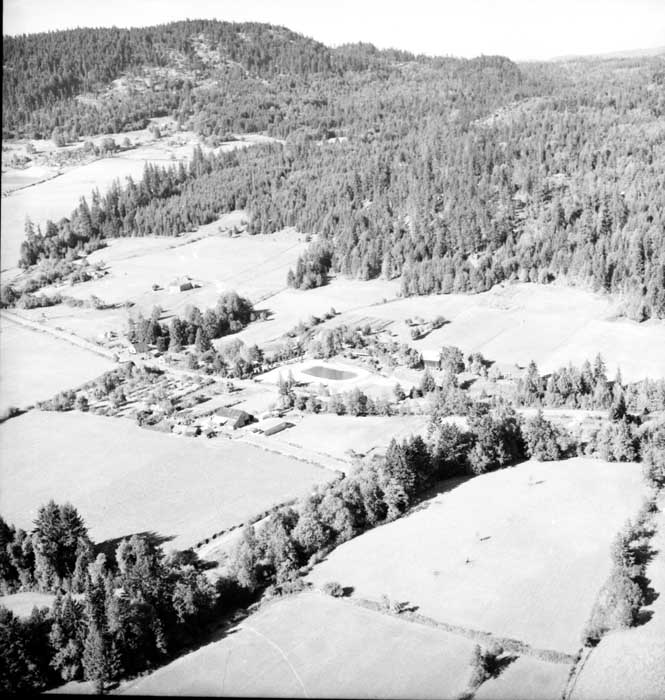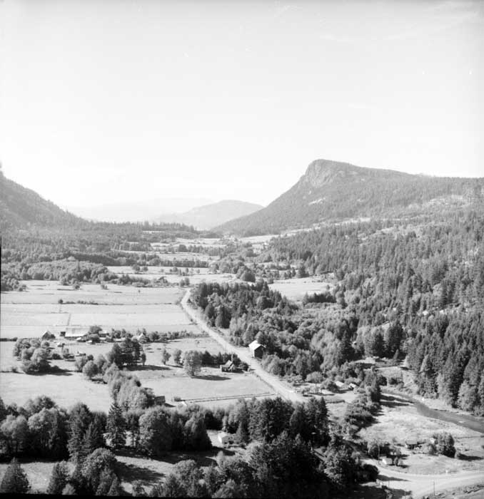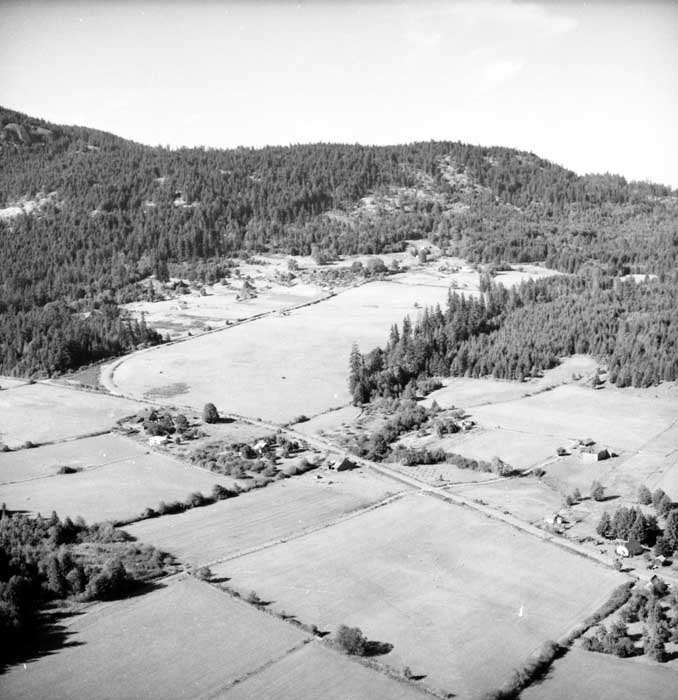 Further to your identifying...the 2 fields on the left before you go up Lees Hill with the grove of trees, a barn and house were owned by Ted and Daisy Gear at the time of this photo. The barn was built by the Furness brothers and the house was built by my parents in 1960. This was part of 160 acres which today includes both sides of Furness Rd and was Valley View Ranch....up to 10,000 turkeys were raised a year on this property with Hereford cattle, Suffolk Sheep and grains in the lower fields.
