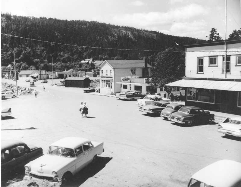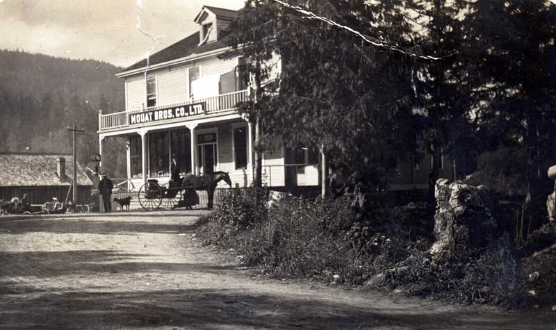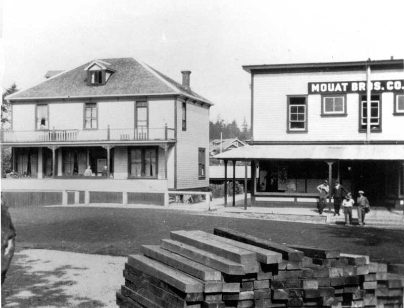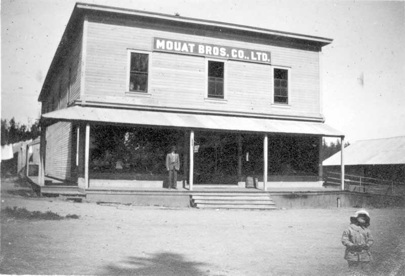 Mouat’s Boarding House, Mouat’s Bros. Co. Ltd., store, railway ties, 1927.