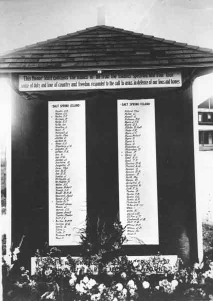 Ceremony of the Gulf Islands Honour Roll Spring of 1920