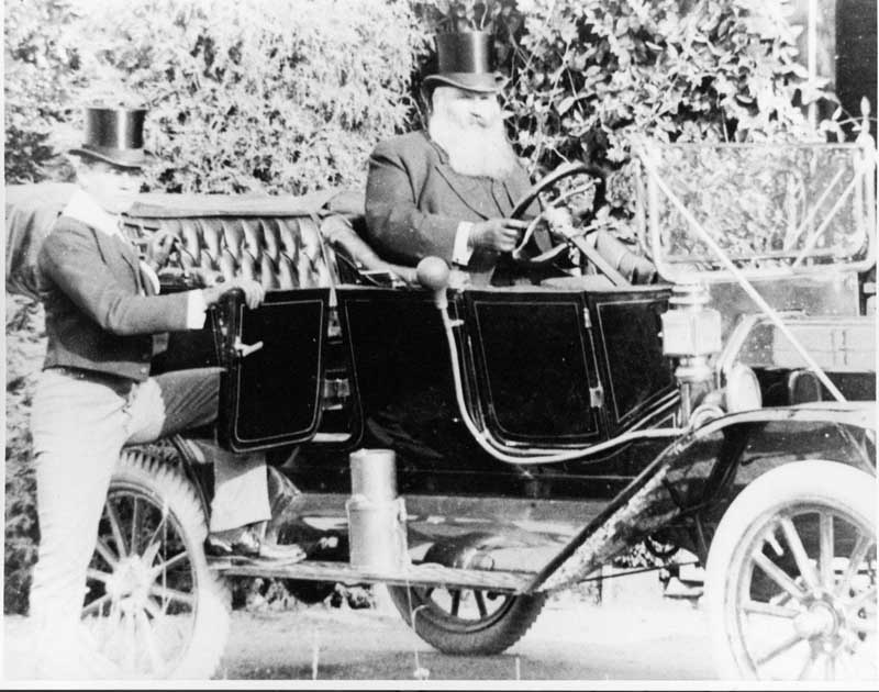 W.M. Mouat (at wheel), Gavin Mouat (far right), 1915.