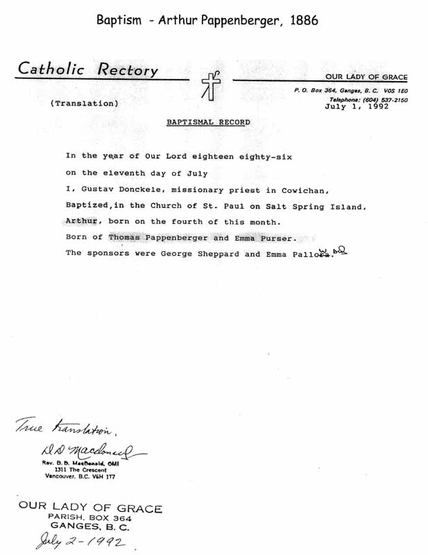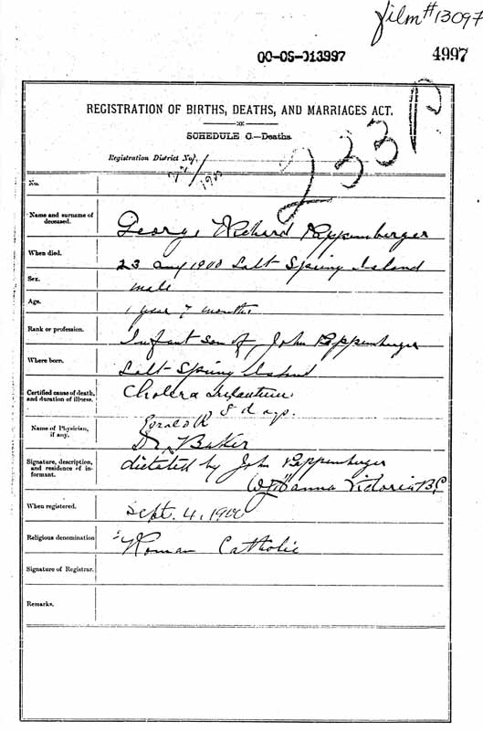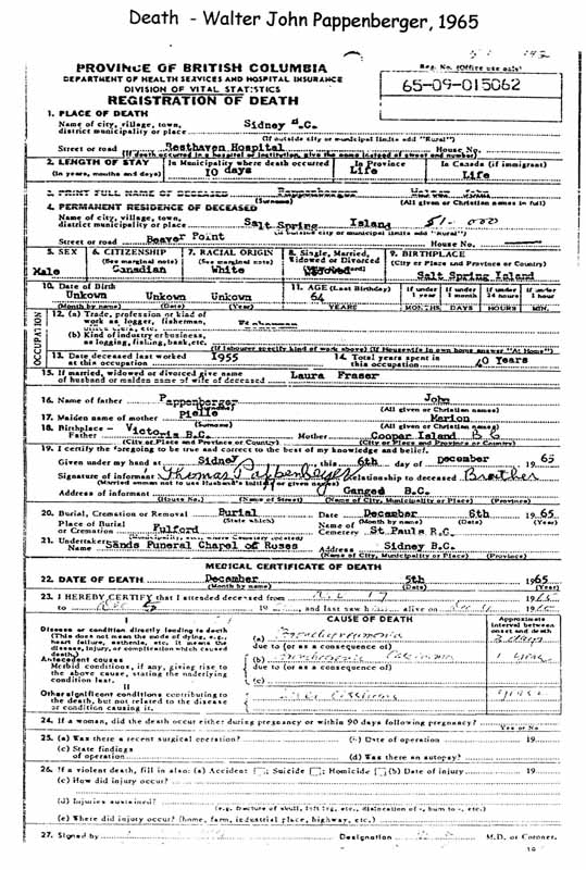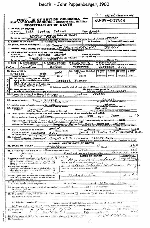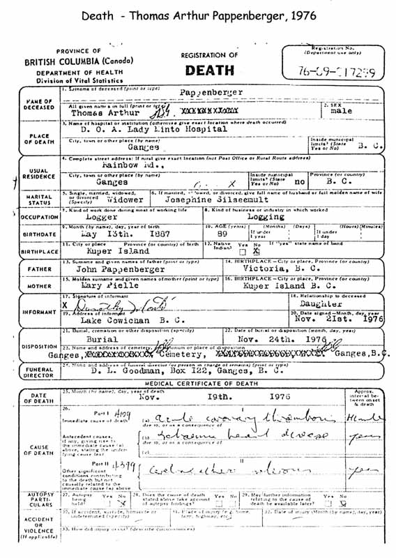 Thomas Pappenberger Death Certificate, 19 November 1976
