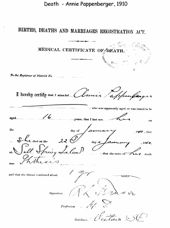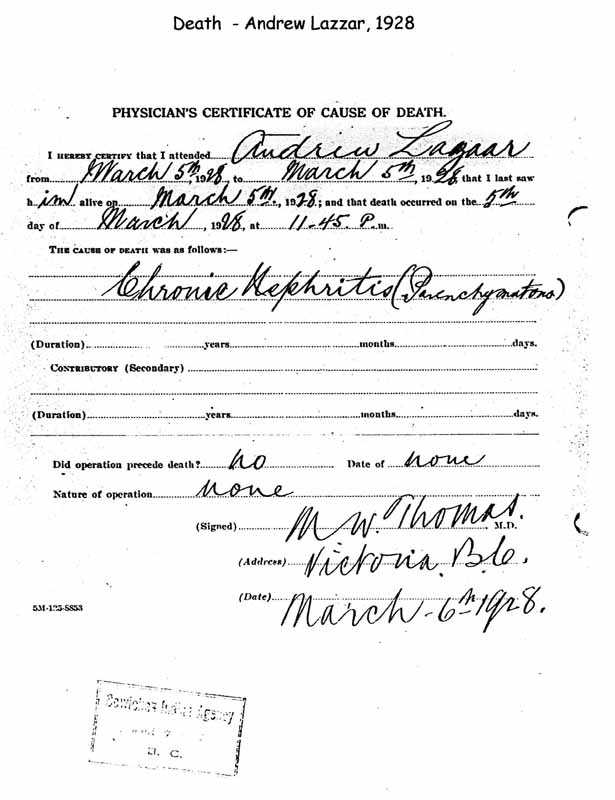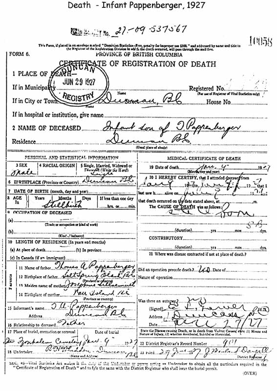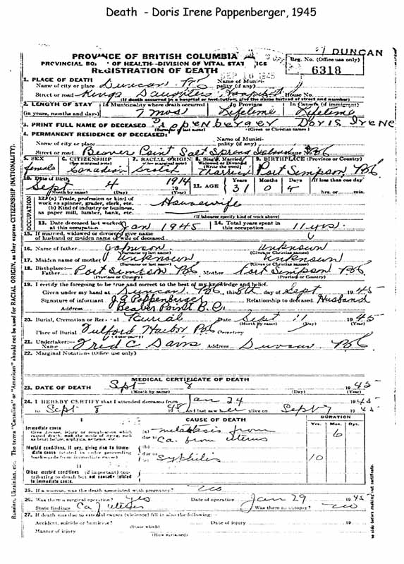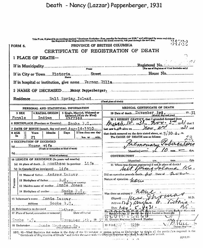 Nancy (Lazzar) Pappenberger Death Cerificate, 1931
