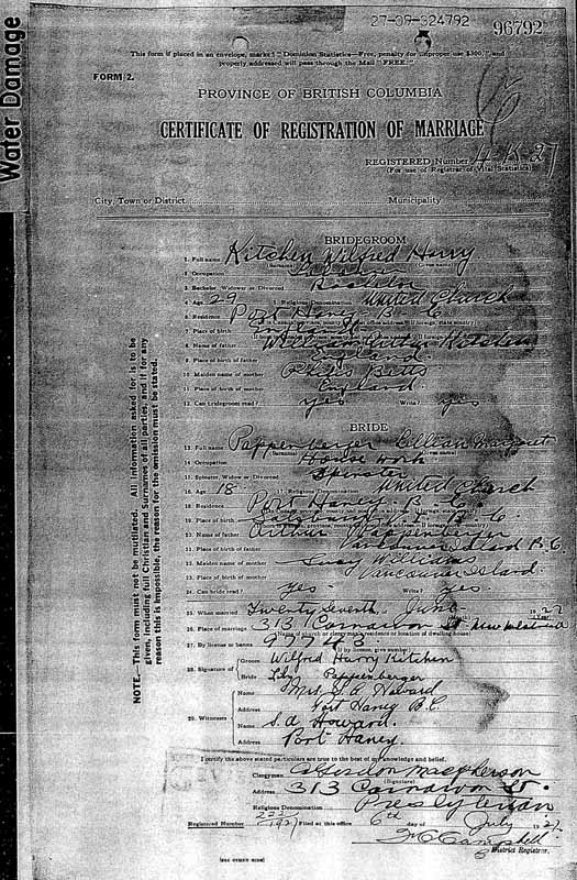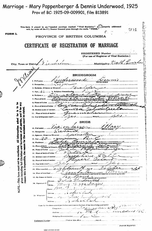 Mary Pappenberger - Dennis Underwood Marriage Certificate, 1925