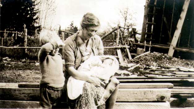 Here at Falkland, Dad did farming. Mother said his nerves where bad after the war and she used a crosscut saw to cut rounds of wood for the stove. Mother was a good splitter of wood with hammer and wedges well into her 80s. Our two elder sisters were born at home in Falkland. Years later, sister Mary (McDonald), had to trace her nurse and doctor as she had not been registered, so was unable to get a birth certificate.