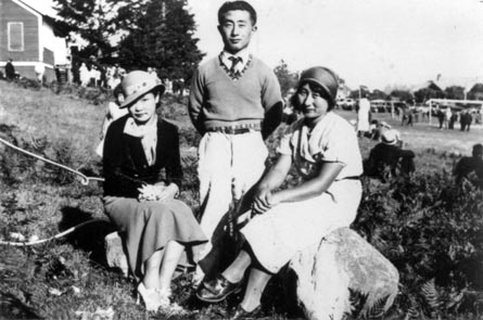 Victor and Miyoko Okano with Miss Nagata, (left), at a Fall Fair in the 30s