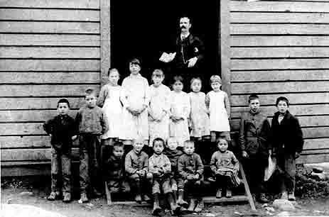 Teacher Mr. Lavigne. Original class at Beaver Point School Seated in front: ? , Alexander McLennan, ? , Ewen McLennan