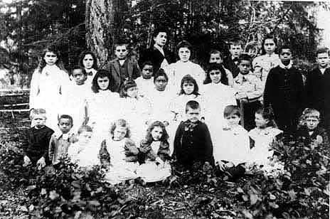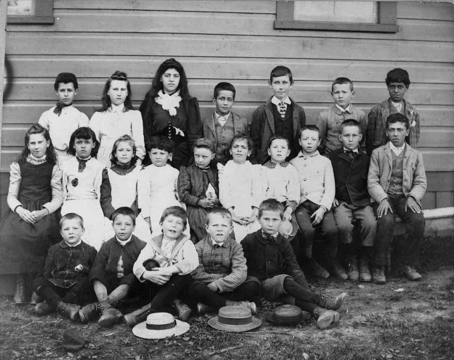 The photograph was taken at the end of that first school year in 1905, on the occasion of the awarding of a Roll of Honour to one of her Hawaiian community students, Willie Palua (Kanaka people, the Hawaiians called themselves). Willie's father Johnny Palua (also spelled Pallua) was one of the school's three Trustees. The photograph was submitted to the 1978 book Snapshots of Early Saltspring by another Isabella Point School Trustee, Edward Lumley, whose children also attended the school. (This book is still in print - the photo is on page 65)