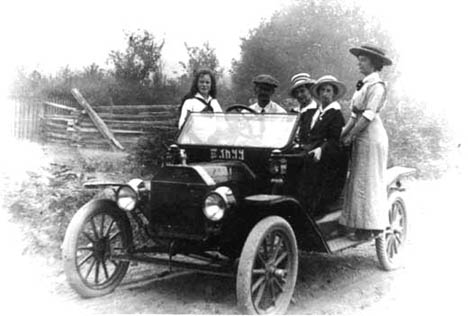 Off for a ride in Patterson’s first truck, with Wm D Patterson driving. Ivy and Grace sisters of Emma.
