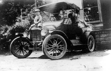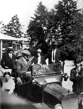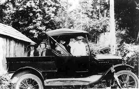 His carriage and horse replaced by Salt Spring Island’s first automobile. Mr Bullock in the driver’s seat. Willie Palmer is getting in behind.