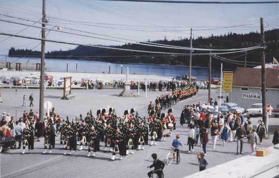 The forthcoming Armistice Day ceremony, to be held this coming Sunday, Nov. 11th at 10:45 P.M. at the Cenotaph will be the continuation of a tradition that began some 40 years ago. As can be seen by these pictures both taken from the steps of the S.S.I.Trading Co., the countryside, the dress of the people and the mode of transportation was different. However, the solemn occasion - the remembrance of fallen comrades was no more heartfelt or more poignant than it is today.