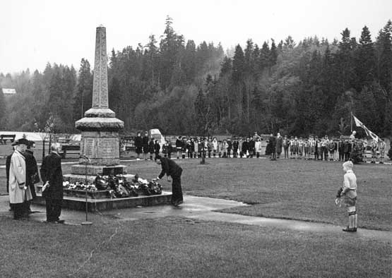 The Honour Roll, with its wooden plaques listing all the Gulf Islanders who served in the armed forces, was erected in 1920. It was not until 1921 that a public meeting was called by the I.O.D.E. to discuss the advisability of erecting a cenotaph, in honor of those who gave their lives in serving their country. At this public meeting, the late Mr. Edward Walter was elected Chairman, Mr. LF. Speed, Secretary and the late Mr. Gavin C.Mouat, Treasurer. These three men headed the drive that succeeded in raising the $1200 for the Cenotaph.