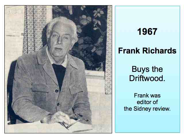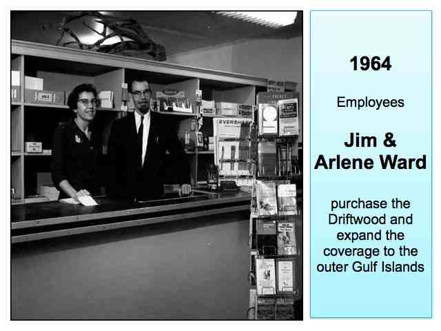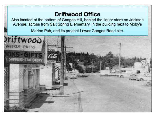 While going through those very little I would say probably one full page would be ads out of the 10. And the copy of the paper I think was a nickel at that time. In 1964, two of the employees at the paper Jim and Arlene Ward bought the driftwood and expanded it to coverage to the outer islands to Maine Pender and Galliano and it truly became the Gulf Islands driftwood at that, at that point. 1967 Frank Richards bought the driftwood Frank was editor of the Sydney review at the time and had been working there for about 15 years, wanted to buy the Sydney review and they wouldn't part with it. So he started looking around. And Saltspring was very close. At the time, the Sydney paper was as popular as the driftwood in some regards, it was a much bigger paper. And it was for sale on on Saltspring at the time. So Frank, as a matter of fact, I just got a copy of the 1959 Sydney review, just before lunch today with some of Frank's reviews in it for books, and it's really interesting. So I'm gonna try and have a copy of that for our open house. Now in those days, Ganges and Saltspring was a pretty small place, and you did what you could to make a living. And the driftwood was really no different. Et cetera. You know, it grew at started small, got big, got small again, at that time, the bookstore excetera was part of the driftwood there was a bookstore stationery store, a print shop, and probably because Frank like wine, a winemaker store. And this is Barbara, his wife, who was working etc. At the time. Since the same building this is a shot you can see the gas station to be a gas station. And this is looking towards moments to where Saltspring air dock would be now as you come down the hill and go through town. So this is where the driftwood office was here on the left. And the driftwood has moved around a lot was located at the bottom of the hill behind the liquor store in Jackson Avenue. One time across from Salt Springs Elementary, as Tony Richard says his favorite spot was when it was located next to movies. And of course now it's located lower Ganges road. In 1970, the driftwood moved from the customer style printing to wet press press had been in operation in Victoria for a few years. And the technology had become such that they could now print quicker. And so they could expand their services to entertain other customers. So the driftwood had grown in size and in revenue and what was now able to afford a better quality print. So you can see now that we're into five columns, the picture looks better. It was very few pictures in the other Jeff woods, mostly line drawings. And we started to see how the stories were laid out. The Banner had changed. And so now they were able to run as many of these as they wanted, very quickly. This was the copy graphic machine. Dorothy, did you ever use this? No. Okay. This machine was state of the art. So you picture your most expensive laptop computer today. This was it right there. And what it did to produce a sheet of paper, very high quality glossy type paper, which would be run through a waxer. So you get a coat of wax on one side, we stripped into columns. And then using a little roller like this, it would be rolled up on a page. And that's what we call wax up. And so this machine was just for typesetting. It was just for the words and the columns. And then they'd be arranged on a piece of paper. In 1972, I believe it was machine cost 4000 bucks, and the training was three months was more than a new car. So at that time, members of the Richards family who were working at the driftwood, Frank was a publisher. Tony was the editor and reporter Barbara was running, et cetera. Alice was the photographer and typesetter and she didn't take set that obviously I've never been much of a proofreader you know, Joe Richards, Tony sister in accounting, Valerie, another sister in sales. So I thought it'd be fun to pull out a few old ads from 1970 Just so you can compare prices. This will bring a tear to some people's eyes 17 acres near Ganges with a large peat soil deposit. Terrific potential for your investment was being advertised for 27 $1,500 Try your terms