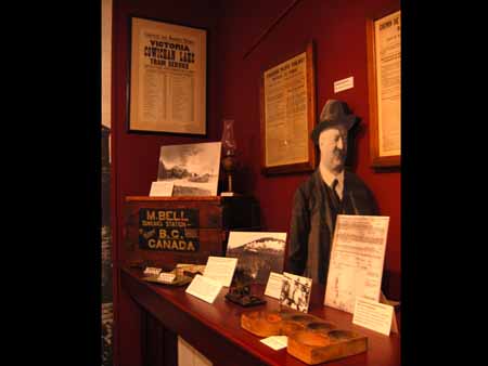 and this is Duncan's Emporium one of the The first general stores created in the area. And that was Harry Smith, who turned out to be quite a prolific figure in the area. Okay, and this is a detail from our recreation display. Recreation was a huge draw, especially at the turn of the 20th century and into the 20s. Of course fishing and hunting. So, you know, we absolutely had to have that reference. Even though it's a very small area of the museum, we had to have that represented. And this is fly fishing box. And this is our general store. This actually, I didn't take a picture of the shelves there, they're just chock a block full of everything that you would see in a general store every day, everything from buttons to bear traps. And in here you see the coffee grinder and these wonderful costs that the store owner would use to, to keep his sleep team. And of course, the old telephone dress and a bear trap. You get everything there in general stores you could get you had to get up the only place you could get anything. And apparently could even have dentistry worked on there. So I don't know. I think that would be a bit challenging. That's one of our general stores. Archival photo. And another one. I thought it was interesting to see the bananas there too. Now, this is the interior of the nurses, residents of King's daughters hospital Kickstarters hospital was started was actually completed the building was completed in 1911. But it was started by a group of women actually who who who started they were part of the king's daughters. Actually it was called the king's daughters and sons. But the circle or the branch that was here was called the scattered circle. And that was established by Bessie Maitland Dougal. And she was actually from the south for the American South. But she, she and her husband moved here. And they were determined to do good in God's name. And one of those things was, you know, establishing hospitals. So they worked very, very hard to establish this. And in 1911, they did it else became a training hospital for nurses. And so we have these wonderful photographs of the nurses in their in their residence. And this is Becky Maitland. And, okay. So this is one of the things that we do and those everything that you just saw that those are from our permanent displays or permanent exhibits. But every summer we have a major exhibit. And this year, it was called digging up the past mining on Mount Sychar. And we do have a major summer exhibit every single year. And then throughout the year we have exhibits as well. So we do about three or four in this in in this room alone. It's called the Priscila low gallery in an honor of the former curator. And what you see here is an aura bucket that was found on Mount Sychar. I don't know Has anybody ever been to mount Sychar? Here at all? No. Okay. Yeah, okay. Well, there's nothing there. Now. It's an astonishing story. It's established Duncan Duncan's economy. It was a window. And in fact, the exhibit years were at 97 to 1907. And that's because of this discovery of copper by Harry Smith, who discovered this vein of copper. And it led to London syndicates getting involved because there was so much potential for making money. So there were a number of mines, the best known are Villa Nora and the Thai. And it just put Duncan really on the map economically. So in this in the Priscilla gallery, this is where we get to explore these, you know, historical events. And there's, there's no it never I've got our exhibits planned up to 2012 at the moment, and really, I could plan for just decades ahead. There's so many interesting things to explore. And this is a detail from the exhibit. Oh, and a mount sticker. Even though there were almost 2000 People living up there and it's 1400 feet, sea level, from sea level. There were almost 2000 people living there were two townships. There were churches, schools, there was a livery that apparently was even an opera. So these were two thriving townships. And it was interesting that when I went up in April of 2007, when you go up there, there's absolutely nothing now you can see part of the original tramway there was an aerial tramway. That property or straight down, I think it was 1900 feet itself. You can see some plumbing. And I even saw a beam from the old mount Sukra hotel. But there is absolutely nothing there now unless you dig, and I did, because I was with people who were who were doing that. And so I was really lucky to find that that bucket and find the the picture there. There's not a lot up there. Now, the museum has a collection of things for sure. But it's hard to believe that it was it was such a thriving time. And yet there's absolutely nothing there now. This is another detail of the exhibits. We've got some of our archival documents there. And the the archives i i use all the time, of course for my exhibits. Because we have such a wonderful array of photographs and documents. With this exhibit, I had to two documents that I had to put on display for it. One was the hotel register for promote sicker for the mount sicker hotel. And I simply had to have it out because on one page, there are names that anybody would recognize, for example, Rockefeller and Vanderbilt, Heinz, Carnegie, all these people had signed into the hotel. And they did they did visit their mining and concerns while they went all over the world. But it was very interesting to see them here, here in the Cowichan Valley. So that's one thing that I had on display. And the other thing was a ledger of the Tai Chi Tramway. So the menorah mine, they shipped there or out on the a narrow gauge railway. And then the Thai had this aerial tramway. So the it was astonishing that in those that the Orb was taken down, and it dropped 1900 feet down this aerial tramway and the manager there with Clara, Claremont, living Livingston, and working with him with somebody called William mordant Dwyer. Well, this, this would have been, you know,