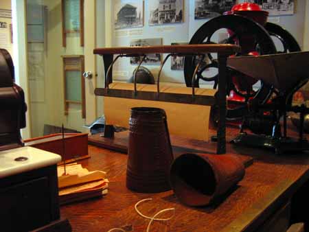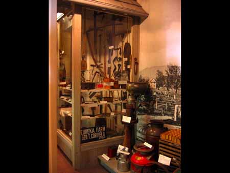Alright, let's just do detail from the bedroom to little bears on the bed. And this is our commerce section. And we were really lucky we we had a designer from Victoria, his name's Stuart Stark, and he helped design this, this whole gallery for us, it's really quite outstanding. And you see the mural in the background that's taken from one of our archival photographs. We've got a couple of those in the museum, and they really make a spectacular backdrop. The other thing too, is that this this year, every year, we celebrate Celebrate Heritage Week, and this year, the theme is taking care of business. So it's really it's also for Duncan couch and Chamber of Commerce, commerce, their centennial year as well. So it's gonna be interesting to develop something to help them celebrate that. And what I did last year is I had a walking tour of downtown Duncan which was really quite popular. It was a very cool day and I was really pleased to see so many locals come out and enjoy that. So I hope to be doing that again this year, this time with the emphasis on on business. And just before we go we'll just see on the right hand side there's a few things from Duncan garage, which was a quite a well known business for cars Okay, and one of our archival photographs This is the couch and merchants truck