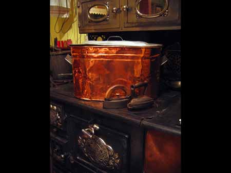 Okay, and there's that there's that oh, there it is. So you can see it clearly settlers effects. Okay. All right. So the, the first important economy in in Duncan in the Cowichan Valley was agriculture. So this is a fall fit. Oh, okay. This is the couch and fall pair and dog show from 1916. But of course, the very first one took place, it was the couch in Salt Springs, Gimenez, fall fair, in 1868. And that was held on her road and maple Bay. So the this was logging hadn't started yet certainly mining wasn't around. So this is this was how Duncan and the couch and valley made itself and economic center. And so much so that when the farmers the farmers would bring their milk into Duncan, because that's where the couch and Creamery was. Okay, well, you can just see a little bit of this, you can see cream separator there anyway. But the couch and creamy was established in 1895. And it was the first Co Op outside of Ontario. And it was certainly became an extremely successful business. There were, I think there were 300 shareholders and each, I think each put in through those $3,000 Altogether, that they started with, and then eventually when it was operating at its full capacity, it was it was generating $300,000 a year. So it was a very successful well industry really. But with regard to the farmers bringing in their mouth, they would come into the Dunkin Monday, Wednesday and Friday. And that was certainly the time when the merchants you know, would be open and they would of course be you know, the the fairy, the farmers would be coming in and, and purchasing things for their families and supplies and that kind of thing. But on Thursdays, it became known in Duncan as early closing Thursday. And that's simply because the merchants recognized that there was no need to stay open later because the farmers weren't coming in. So that's that's how it came to be known as early closing Thursday and the business was sensitive to the to the rhythms of the land still at that point because of the importance of agriculture. And just this picture here also shows our tool shed and I show you that because I wanted to say just how generous our community has been, you know, long before I got there. People were dedicated to seeing a museum that held all these really important artifacts. And as I said I still have people that bring in things every single week. But initially they started out initially just coming out with an amazing amount of wonderful objects. So this is the one of the places that we're we've got them displayed okay, this is the the kitchen detail of the kitchen this is our wood burning stove and As you can see, just on the, on the bottom right hand corner, a reservoir. And of course, a copper tin up above. This is really the kitchen is where the magic happens in our school programming, the grade three curriculum calls for Pioneer studies. And of course, what we do complements that really nicely. And it's it's a really, really wonderful tool the kitchen is for, for teaching children, we have a number of artifacts here that, of course, their accession to their part of the collection. But we also have a number that are teaching artifacts. And those are the ones that we we pulled out and is the children are actually able to handle. And so it's really fun to watch them pick up these bad irons and quite be quite amazed by the weight of them and just asking them to imagine what it would be like to do that ironing all day long on Tuesday, for example, I think, I think that's when ironing was generally generally done. Okay, and there's a close up of the sad iron. And of course the washboards and these are the ones that we have on display. But we also have other ones just tucked around the corner from when we do our programs so that so that the students can really feel the glass and the difficulty of it. Okay, this is our parlor. And you can see we have a phonograph there. That's one of the another thing that we use in the program and the pump organ on the right hand side. And also to mention to that visit Halem hotel which which was no longer in existence in 1990 was considered as a home for for the museum. But when it did come down, we were really lucky to get the floorboards from there and the floorboards are actually installed all in our representation of the kitchen, the parlor and the bedroom. So it's it's a really lovely way to save some of that heritage. And this is another part of the parlor and the, the pump organ which play a very brief, you know, little song on it, just so they can see how it works. And the other fascinating thing, see if I can use this now thanks