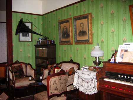 Okay, and there's that there's that oh, there it is. So you can see it clearly settlers effects. Okay. All right. So the, the first important economy in in Duncan in the Cowichan Valley was agriculture. So this is a fall fit. Oh, okay. This is the couch and fall pair and dog show from 1916. But of course, the very first one took place, it was the couch in Salt Springs, Gimenez, fall fair, in 1868. And that was held on her road and maple Bay. So the this was logging hadn't started yet certainly mining wasn't around. So this is this was how Duncan and the couch and valley made itself and economic center. And so much so that when the farmers the farmers would bring their milk into Duncan, because that's where the couch and Creamery was. Okay, well, you can just see a little bit of this, you can see cream separator there anyway. But the couch and creamy was established in 1895. And it was the first Co Op outside of Ontario. And it was certainly became an extremely successful business. There were, I think there were 300 shareholders and each, I think each put in through those $3,000 Altogether, that they started with, and then eventually when it was operating at its full capacity, it was it was generating $300,000 a year. So it was a very successful well industry really. But with regard to the farmers bringing in their mouth, they would come into the Dunkin Monday, Wednesday and Friday. And that was certainly the time when the merchants you know, would be open and they would of course be you know, the the fairy, the farmers would be coming in and, and purchasing things for their families and supplies and that kind of thing. But on Thursdays, it became known in Duncan as early closing Thursday. And that's simply because the merchants recognized that there was no need to stay open later because the farmers weren't coming in. So that's that's how it came to be known as early closing Thursday and the business was sensitive to the to the rhythms of the land still at that point because of the importance of agriculture. And just this picture here also shows our tool shed and I show you that because I wanted to say just how generous our community has been, you know, long before I got there. People were dedicated to seeing a museum that held all these really important artifacts. And as I said I still have people that bring in things every single week. But initially they started out initially just coming out with an amazing amount of wonderful objects. So this is the one of the places that we're we've got them displayed okay, this is the the kitchen detail of the kitchen this is our wood burning stove and As you can see, just on the, on the bottom right hand corner, a reservoir. And of course, a copper tin up above. This is really the kitchen is where the magic happens in our school programming, the grade three curriculum calls for Pioneer studies. And of course, what we do complements that really nicely. And it's it's a really, really wonderful tool the kitchen is for, for teaching children, we have a number of artifacts here that, of course, their accession to their part of the collection. But we also have a number that are teaching artifacts. And those are the ones that we we pulled out and is the children are actually able to handle. And so it's really fun to watch them pick up these bad irons and quite be quite amazed by the weight of them and just asking them to imagine what it would be like to do that ironing all day long on Tuesday, for example, I think, I think that's when ironing was generally generally done. Okay, and there's a close up of the sad iron. And of course the washboards and these are the ones that we have on display. But we also have other ones just tucked around the corner from when we do our programs so that so that the students can really feel the glass and the difficulty of it. Okay, this is our parlor. And you can see we have a phonograph there. That's one of the another thing that we use in the program and the pump organ on the right hand side. And also to mention to that visit Halem hotel which which was no longer in existence in 1990 was considered as a home for for the museum. But when it did come down, we were really lucky to get the floorboards from there and the floorboards are actually installed all in our representation of the kitchen, the parlor and the bedroom. So it's it's a really lovely way to save some of that heritage. And this is another part of the parlor and the, the pump organ which play a very brief, you know, little song on it, just so they can see how it works. And the other fascinating thing, see if I can use this now thanks