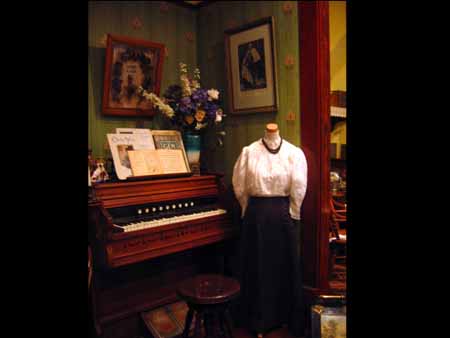 Okay, and there's that there's that oh, there it is. So you can see it clearly settlers effects. Okay. All right. So the, the first important economy in in Duncan in the Cowichan Valley was agriculture. So this is a fall fit. Oh, okay. This is the couch and fall pair and dog show from 1916. But of course, the very first one took place, it was the couch in Salt Springs, Gimenez, fall fair, in 1868. And that was held on her road and maple Bay. So the this was logging hadn't started yet certainly mining wasn't around. So this is this was how Duncan and the couch and valley made itself and economic center. And so much so that when the farmers the farmers would bring their milk into Duncan, because that's where the couch and Creamery was. Okay, well, you can just see a little bit of this, you can see cream separator there anyway. But the couch and creamy was established in 1895. And it was the first Co Op outside of Ontario. And it was certainly became an extremely successful business. There were, I think there were 300 shareholders and each, I think each put in through those $3,000 Altogether, that they started with, and then eventually when it was operating at its full capacity, it was it was generating $300,000 a year. So it was a very successful well industry really. But with regard to the farmers bringing in their mouth, they would come into the Dunkin Monday, Wednesday and Friday. And that was certainly the time when the merchants you know, would be open and they would of course be you know, the the fairy, the farmers would be coming in and, and purchasing things for their families and supplies and that kind of thing. But on Thursdays, it became known in Duncan as early closing Thursday. And that's simply because the merchants recognized that there was no need to stay open later because the farmers weren't coming in. So that's that's how it came to be known as early closing Thursday and the business was sensitive to the to the rhythms of the land still at that point because of the importance of agriculture. And just this picture here also shows our tool shed and I show you that because I wanted to say just how generous our community has been, you know, long before I got there. People were dedicated to seeing a museum that held all these really important artifacts. And as I said I still have people that bring in things every single week. But initially they started out initially just coming out with an amazing amount of wonderful objects. So this is the one of the places that we're we've got them displayed okay, this is the the kitchen detail of the kitchen this is our wood burning stove and As you can see, just on the, on the bottom right hand corner, a reservoir. And of course, a copper tin up above. This is really the kitchen is where the magic happens in our school programming, the grade three curriculum calls for Pioneer studies. And of course, what we do complements that really nicely. And it's it's a really, really wonderful tool the kitchen is for, for teaching children, we have a number of artifacts here that, of course, their accession to their part of the collection. But we also have a number that are teaching artifacts. And those are the ones that we we pulled out and is the children are actually able to handle. And so it's really fun to watch them pick up these bad irons and quite be quite amazed by the weight of them and just asking them to imagine what it would be like to do that ironing all day long on Tuesday, for example, I think, I think that's when ironing was generally generally done. Okay, and there's a close up of the sad iron. And of course the washboards and these are the ones that we have on display. But we also have other ones just tucked around the corner from when we do our programs so that so that the students can really feel the glass and the difficulty of it. Okay, this is our parlor. And you can see we have a phonograph there. That's one of the another thing that we use in the program and the pump organ on the right hand side. And also to mention to that visit Halem hotel which which was no longer in existence in 1990 was considered as a home for for the museum. But when it did come down, we were really lucky to get the floorboards from there and the floorboards are actually installed all in our representation of the kitchen, the parlor and the bedroom. So it's it's a really lovely way to save some of that heritage. And this is another part of the parlor and the, the pump organ which play a very brief, you know, little song on it, just so they can see how it works. And the other fascinating thing, see if I can use this now thanks