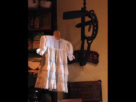 Okay, and there's that there's that oh, there it is. So you can see it clearly settlers effects. Okay. All right. So the, the first important economy in in Duncan in the Cowichan Valley was agriculture. So this is a fall fit. Oh, okay. This is the couch and fall pair and dog show from 1916. But of course, the very first one took place, it was the couch in Salt Springs, Gimenez, fall fair, in 1868. And that was held on her road and maple Bay. So the this was logging hadn't started yet certainly mining wasn't around. So this is this was how Duncan and the couch and valley made itself and economic center. And so much so that when the farmers the farmers would bring their milk into Duncan, because that's where the couch and Creamery was. Okay, well, you can just see a little bit of this, you can see cream separator there anyway. But the couch and creamy was established in 1895. And it was the first Co Op outside of Ontario. And it was certainly became an extremely successful business. There were, I think there were 300 shareholders and each, I think each put in through those $3,000 Altogether, that they started with, and then eventually when it was operating at its full capacity, it was it was generating $300,000 a year. So it was a very successful well industry really. But with regard to the farmers bringing in their mouth, they would come into the Dunkin Monday, Wednesday and Friday. And that was certainly the time when the merchants you know, would be open and they would of course be you know, the the fairy, the farmers would be coming in and, and purchasing things for their families and supplies and that kind of thing. But on Thursdays, it became known in Duncan as early closing Thursday. And that's simply because the merchants recognized that there was no need to stay open later because the farmers weren't coming in. So that's that's how it came to be known as early closing Thursday and the business was sensitive to the to the rhythms of the land still at that point because of the importance of agriculture. And just this picture here also shows our tool shed and I show you that because I wanted to say just how generous our community has been, you know, long before I got there. People were dedicated to seeing a museum that held all these really important artifacts. And as I said I still have people that bring in things every single week. But initially they started out initially just coming out with an amazing amount of wonderful objects. So this is the one of the places that we're we've got them displayed okay, this is the the kitchen detail of the kitchen this is our wood burning stove and As you can see, just on the, on the bottom right hand corner, a reservoir. And of course, a copper tin up above. This is really the kitchen is where the magic happens in our school programming, the grade three curriculum calls for Pioneer studies. And of course, what we do complements that really nicely. And it's it's a really, really wonderful tool the kitchen is for, for teaching children, we have a number of artifacts here that, of course, their accession to their part of the collection. But we also have a number that are teaching artifacts. And those are the ones that we we pulled out and is the children are actually able to handle. And so it's really fun to watch them pick up these bad irons and quite be quite amazed by the weight of them and just asking them to imagine what it would be like to do that ironing all day long on Tuesday, for example, I think, I think that's when ironing was generally generally done. Okay, and there's a close up of the sad iron. And of course the washboards and these are the ones that we have on display. But we also have other ones just tucked around the corner from when we do our programs so that so that the students can really feel the glass and the difficulty of it. Okay, this is our parlor. And you can see we have a phonograph there. That's one of the another thing that we use in the program and the pump organ on the right hand side. And also to mention to that visit Halem hotel which which was no longer in existence in 1990 was considered as a home for for the museum. But when it did come down, we were really lucky to get the floorboards from there and the floorboards are actually installed all in our representation of the kitchen, the parlor and the bedroom. So it's it's a really lovely way to save some of that heritage. And this is another part of the parlor and the, the pump organ which play a very brief, you know, little song on it, just so they can see how it works. And the other fascinating thing, see if I can use this now thanks