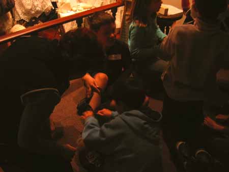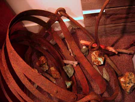 actually, that's the one I want those with the laser, there, there it is. This right here, I don't know if any of you have seen this before. But fascinating to my grade three students. It's, it's a hair race. When you look up close, I mean, it looks like dried flowers, but it's actually a Victorian activity where they would gather hair from all members of the family also, you'd have all different shades and be wound around wire, and then you know, flowers and leaves and things would be created. So it's it's quite astonishing, not not so hard to believe when you think of lockets of hair and that kind of a piece of hair and a locket. But it's it's quite intriguing to the grade three students.