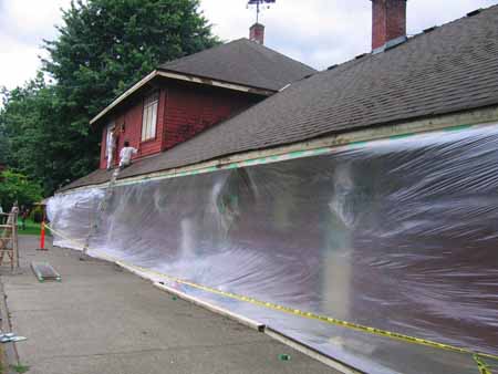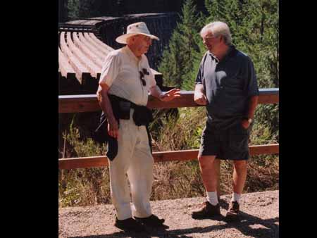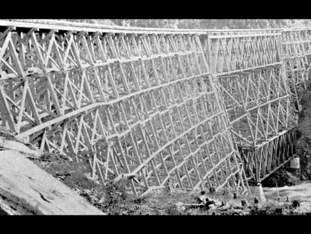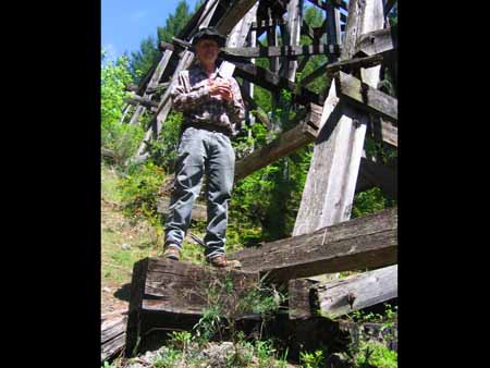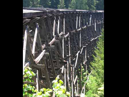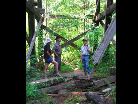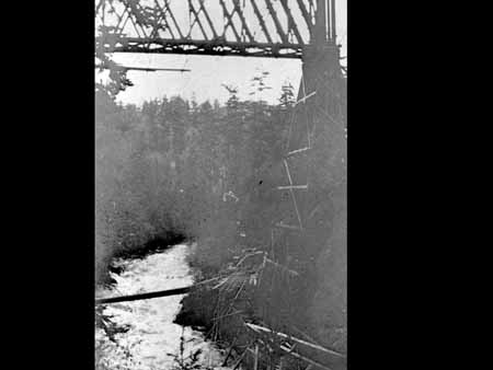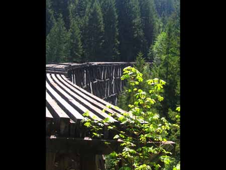 So, so with the help of the Heritage Legacy Fund in the city of Duncan in our community, because there was fundraising as well. We were able to undertake this, this project. And this is the painting stage. We also had amazing volunteers. The painting was done by professionals. But we had three volunteer weekends where people came out and this is Jim Stevan a vintage wood works in Victoria, and basically replaced loads of window panes and anything that had to do with the Windows was done by volume tear. So I'm just really I have I think I have somewhere around 55 volunteers, and they all do an amazing job. Okay, well, after all that work was done last summer. We wanted to celebrate it, of course. So there was a ribbon cutting ceremony in October. And so this is the people who were there. And I think we had about 80 people come out, including Jonathan Yardley. He's the president of heritage BC, and he very kindly came out to help us celebrate. And this is the mayor of light couch and Jack Peake. And he was there as well in the capacity. He's no longer the co chair of the island corridor foundation. He's stepped away from that the island corridor Foundation are the people who took over the rail, the railway and the stations. And so they're they're actually the owners of the station. So of course, they were pleased to have this work done. And this is good a pair and he's the he's actually from Duncan, and he's the executive director of the Heritage Legacy Fund. So we were thrilled to have him there as well recognizing the work. And this is a really fun thing. This is. Her name is Judith gurney. And do you remember when I first started the tour? I mentioned Roland Fossett. He was the first station master. Well, this is his granddaughter. And it occurred to me one day, wouldn't it be lovely to have her come along and cut the ribbon. And so when she's from the mainland, she's from Kamloops, I believe. So when I wrote her, she was really, really happy to come and do that for us. And not only that, she came with a clock that was that was actually had been in the parlor of the original station. The original apartment, which was upstairs. And the clock was dedicated to Roland Fossett on the David's wedding from 1914. So she brought that to us and donated it to us. And it's a wonderful thing to have. Okay, and now the Kinsel trestle. Well, this is probably in my time here has been the biggest thing I've been involved with. It's this wonderful, it's the last bridge of its type in the British Commonwealth in that it's a timber structure, historic timber structure. And it's 1212 storeys high, it's still standing and what what has What's really amazing about it is the history of what hasn't happened in the last 25 or so years. So it was completed in 1920. It underwent a lot of repairs, I'm going to show you a few more photos in a second. Because there was for example, in the 1930 31, there was a flood that took out a lot of the bridge, so it had to be repaired many times, but it was built to hold trains. And so it was very conservatively built. So there's a lot of very good timber in it. But some of the timbers on the outside often looked like it looked like it was about to fall apart. And this, this is the structure that the Ministry of Transportation who actually own it, this is what they wanted to see taken down. But a lot of people are really fond of it. The last time that train went over this bridge was in 1979. And since 1979, it has been received absolutely no maintenance. And of course, these bridges require maintenance, constant maintenance to keep them working. So what happened in in, as I had mentioned before, in in April, the government announced this and it started I don't know if you read about it over here, but it started sort of a media blitz about it. And it was constantly in the news. And this is the bridge. So 1979 was the last time a train went over it. And you see here this, this last approach where you would go on to the bridge was taped was removed actually on both ends on the north and south end in 1998, because there was a fire in in 1988. And then there was a second sort of by vandals and there was a second fire in 1998. And after the 1998 they said Well nobody else can go on this because you can sort of see in the center there's a huge burned hole in there now and so used to be that people would go on and walk across it I have photos of people walking on it, but after that they removed these approaches and made that impossible. So So I haven't received any kind of maintenance for years. But all kinds of abuse and even though the approaches haven't been there since 98, and during that 98 fire it was actually the the Martin Mars water bombers were used to put that fire out so it's been subjected to that and winds and all kinds of things and yet it's still standing so it must have a lot of integrity and later on it was shown that that it definitely does. Okay, this is just standing and looking through many of the bends. This is Tom Patterson, TW Patterson, he was one of the people we really that I know of really started the writing campaign to save this Trustwave wrote about it constantly. And we had him for the exhibit deliver a wonderful talk as well, on the reasons why the trestle should be saved. And this is the other shots just above the river. And these are some couch and historical members. And another detail. And there's the river itself, quite low, because it's summertime. Okay, and this is on the left is Ralph Morris. And he was a senior engineer for CNN for decades, but for two and a half decades, he took care of the bridges in the couch and Valley. And he was called in on a couple of occasions to for his advice, really about this bridge. He I remember meeting him in the summer of 2006. And he came to see the bridge and really believe that it was well worth saving, I should say at this point that that another engineering company had already proposed that they take it d