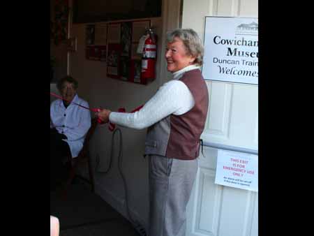 pass it on to a place that was going to take care of it. And so the society did accept it. But what it required was a lot of conservation work. So we did engage somebody and after Several months. It was repaired and, and several of the areas were repainted. And the whole the whole thing at that time that was 10 years ago, cost about $7,000. So but it's a wonderful thing to have in the museum. And actually the artists who did it is Archie Cooper. Sorry. I think it seems he's the he's the person who did many of the London Underground posters, really quite arty Cooper. He was the person who did the London Underground posters for many, many years. So it's a lovely thing to have. Okay. All right, well, this is the moving into our school programming. Now, I told you a little bit about the grade three program. We have about 20 to 30 classes in the year that come in. So we do that's just grade three. And then we also do grade for First Nations program. This one sometimes when we have an exhibit, we create special a special program that complements the the exhibit, and in this one that we had an exhibit called Once upon a time all about children's toys and belongings. So this component of the program was was a walk with a curator. And so basically, they got a little tour with the curator. And, and then later on, they also got to do part, the part of the component was using, I mentioned these teaching artifacts that we have, we also have clothing as well. So there we go. So this lady in the pink tub, that's Ellen Luke haitus. She created this corset for this and they absolutely enjoy. Enjoy trying that on so much. Instead of the boys. Everybody enjoyed trying this on, it was really a lot of fun. Oh, in here, I believe to trying on. I think that's, that's what they're trying on. So for them for these students. I mean, it's just a, it's, it's really, really fun to watch them because of these things. They're just not used to having at all. Okay, all right. So that's the the other. I'll just mentioned before I mentioned this in the school program do or for old, older grades as well, for older children. We do a grade six Remembrance Day program. But this year, I did it for grade 10. I had an exhibit in in November for Remembrance Day called trench art. It's called an art to remember selected trench art treasures. And I had a wonderful collector from Victoria named steven lamb, come up and be the guest curator. And we had grade 10 students in for that. So it was it was a really, really lovely, lovely thing to have him and also just to learn about what you know, trench art is a lot of them, had never heard of it at all. This is a picture of our Christmas pass comes alive program. This is my favorite one of the whole year. And it's because what happens is our wonderful historical members, they come society members, they come in, they get dressed up in Pioneer costumes, they assume the identities of local pioneers of pioneers from the past. And then they're ensconced in the museum. And it's a totally interactive kind of evening, not only for children, but for adults as well. So in this one here, we have Mrs. Castlereagh. And she's making a Christmas pudding. And so what she's doing is she's inviting anybody to come by and give the Christmas pudding a stir, but it has to be in the right direction for good luck. And it's just a really fun way for children and adults to learn about traditions from from the past. Okay, so this one is one of the events that that we had. And this, this is actually is actually because you can see it that at the cancel trestle. I don't know if any of you have been out there. But it became the focus of our 2006 Summer exhibit. And and I'm going to tell you about that in a few minutes. But before I do, this is one of the events we were just doing everything. Oh, well, I should just tell you about the Kinsel trestle, that it seemed that it was going to come down, it seemed like was on the verge of being dismantled. And that was because the Ministry of Transportation in 2006 and April announced that they were getting 1.5 million to the cvrd the couch and Valley Regional District to take it down and you know, build a new one. And this is such an amazing piece of architecture, that there are a number of people who said You know, it simply has to be saved. So one of the things I did throughout that summer I had I had about five or six events just to raise awareness. So this event with this was really fun. This is Molly rocker Newman. She's in the bottom left hand corner. And she interprets Emily Carr. She does it for a car house in Victoria and also the Royal BC Museum. And she does all kinds of events as well. And so this event was called Emily Carr paints the cancelled trestle. Molly is actually a classically trained painter. So what I did is I asked her to do this. And she did. And we set her up out there, and she had her canvas, and she was painting. And the best part is the media did come because it was meant to be an immediate event. And so I was really thrilled when it was on the news that night. And all it did. Of course, the whole point of it was to raise awareness about the Kinsel trestle and the importance of saving it. So that's one of our events. We also every year have a Heritage House Tour, which is our main fundraising event. We have book signings, and I think the one that I probably had the most fun at was Sir Conrad Swan book. He was born in Duncan, but he now lives in England, and he wrote a book called The King from Canada. And that was probably the most popular one we had, because everybody couldn't fit in. It was really a lot of fun. And so these are just some of the things that we do. I mentioned the walking tour, anything that promotes history and heritage is on our agenda. Okay. Now, the other thing that we do, or, or sometimes we have, we have heritage initiatives, things that we started ourselves and other times we just become involved with them. One of the one