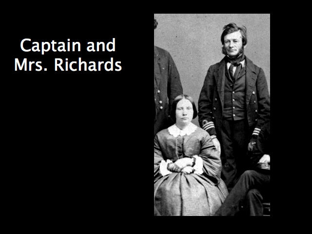This is Mrs. Richards the captain. So he was joined here by his wife, which was a risk sometimes an unusual requires a special permission for his wife to cannot so she arrived in a scramble and spent I think two to three years and had two children while she was here. Rose, who was responsible for keeping the journals and passing them and Vancouver Captain Vancouver Of course, the most loving some of the most important charts that were guiding Richards explorations he admired greatly