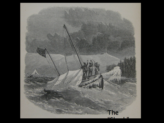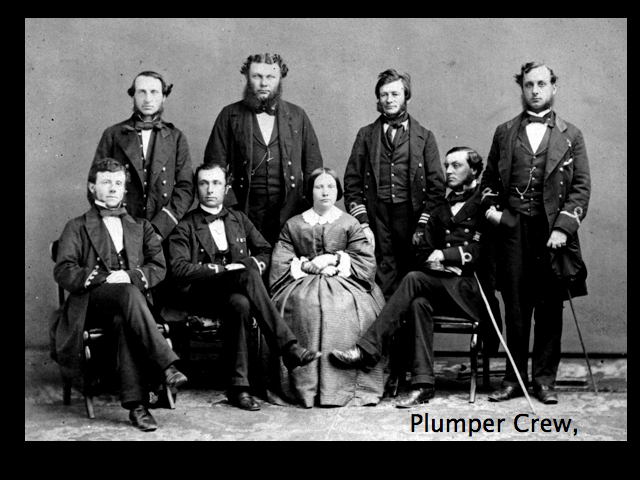 so they came back and really got to work with the surveys and this is when Richard was doing most of really writing a fairly extensive Journal, the one that they have published. So this is the crew. This picture was taken in early 1859 with Mrs. Richards. And Richards is wrong for supporting his crew for keeping very easy discipline is very, very few cases of desertion just up one up here and a couple in San Francisco. And they decided to impose a harsh discipline. Whereas other ships, the time we're losing, sometimes 50 to 100 minutes, which is keeping everybody going. And he writes a letter to happen on Washington, saying, I should be doing injustice to the officers employed on this train service, where I'm not to bring before you the hearty and cheerful way in which they have worked. Under the circumstances which have demanded the exercise of skill and judgment in no ordinary degree. The weather has been far more boisterous. And then with a fair knowledge of the coast I have been prepared for the boats have constantly been detached for 10 or 14 days together entirely on our own resources frequently unable to find any place of shelter at night, they have always returned having accomplished more than their allotted tasks. And I'm thankful to say, accident. So Richard many, many features after his crew, some of the more important ones, you might recognize its main competitor Island, named features after Gao. After Blondo Moriarity Campbell Campbell River dropped and dropped, and these were all his crew members. And that, of course, he named a number of places and waterways after the Hacket. I think he was really running out of names after a while, but one thing he never did was name anything after himself. So he could have named Saltspring. Richards, I guess that would have been appropriate. He named all the scrutiny, he did not. So really, there's one very small channel called riches channel that was named the number of years later. And that's the only recognition which has someone who in fact, made most of the major features of the code. This is a shark, which was one of the detached boats in service. It was pretty hairy, especially when we went down the west coast and 1014 days and that doesn't look very good.
