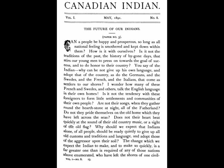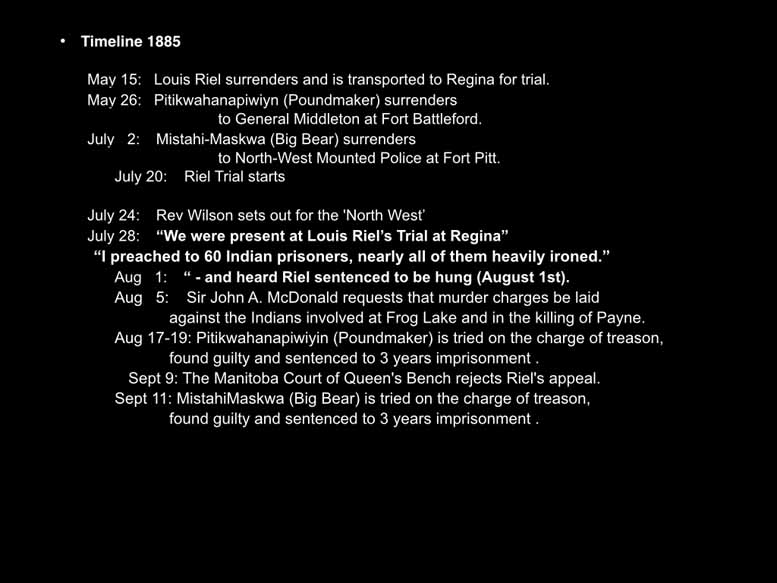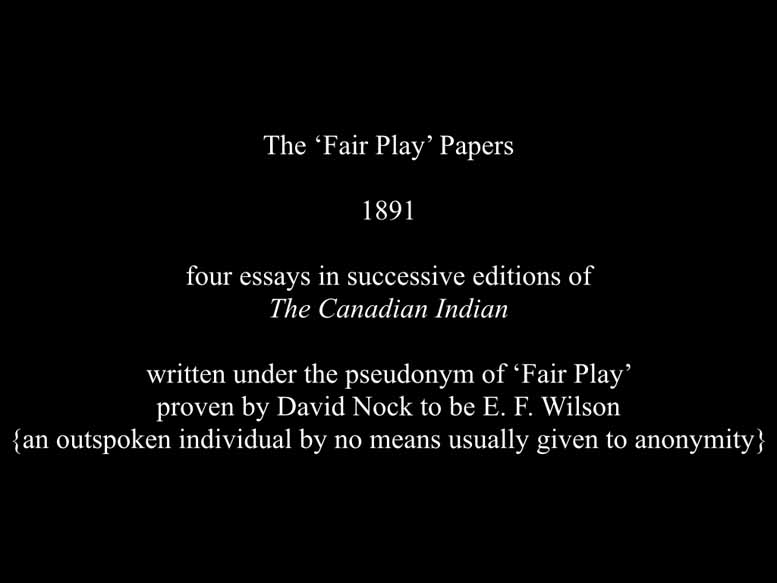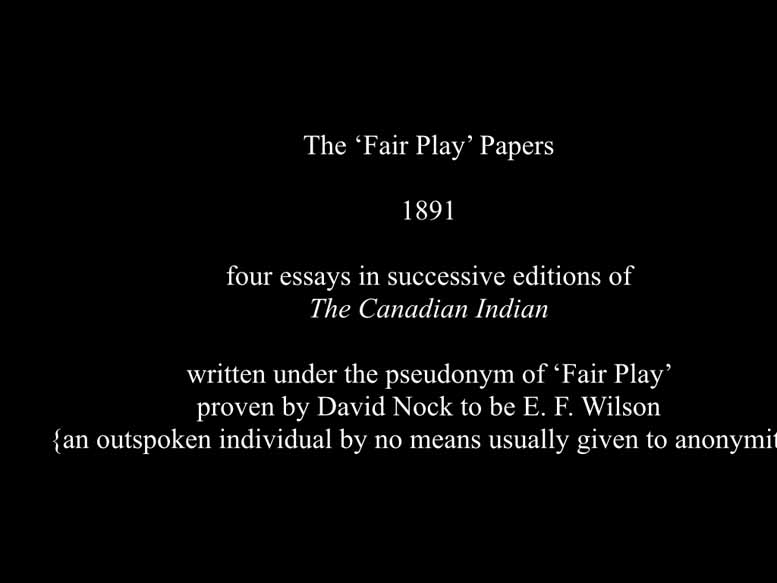 And they're all really standing hands. They're all half starved, I can see that as I start to look at them. This is on the premise. Despite the discontent rampant among Matey and Indians throughout much of the prairies reflected in various altercations, which alarmed the white Canadians poundmaker played no part in sending free I've forgotten to tell you that when he when he then he then graduated as it were from his father and became the chief of the Cree as the chief decree poundmaker played no part in ascending from yet, however, because of his leadership, especially of the young warrior element at the outbreak of the rebellion in 1885, his camp grew in population to several times its normal size, and included crease Dhoni and even a number of meaty poundmaker played no part in any aggressive action by the more excitable element, indeed spoke against such action, but was unable to prevent it. Though he was unable to, though he was able to prevent the victorious warriors from pursuing the retreating forces. And through his intervention, prisoners were protected and well treated. Now, despite that, which Reverend Wilson would have found out from him when he went to interview him, despite that, he was put on trial for treason and Regina, in July 1885. And this is what he said in everything I could do was done to stop bloodshed. Punk maker protested in court, had I wanted war, I would not be here now. I should be on the prairie. You did not catch him. I gave myself up. There's a famous painting so I didn't get permission to be which is odd. poundmaker putting himself up to the general saying I, I want to go through your system. The way that you do it. I want to have a trial and be found innocent because I am. I gave myself up. You've got me because I wanted justice. But he was found guilty and sentenced to three years in prison. Louie Riel was of course, sentenced to be hanged. After serving a year in Stony mountain penitentiary, Manitoba, broken in spirit, and in house, he was released. That was actually because they didn't want such a famous man to die in their prison and he looks at he was going to die. Only four months later, while visiting his adopted father crowfoot. On the Blackfoot reserve, he suffered a hemorrhage and died. Not until the rebellion hysteria had passed was poundmaker belatedly recognized as a man who had never abandoned the peacemakers role, and had fought only in defensive actions. Reverend Wilson was present at the conclusion of results trial and visited in this period include from 1885 to 1893, is a period that includes Wilson's great burst of interest in excellent history, his building of other schools in the West, and during these last years, he's radicalisation away from the customary paternalism of missionaries and government officials away from residential schools as cultural replacement. So, the next one friend so the Canadian Indian and we can move straight on to the next one. The Fair Play papers were published in his own magazine, the Canadian Indian for essays and successive editions of the Canadian Indian, written under the pseudonym of fair play. proven by David nock to be Edward Francis Wilson, an outspoken individual. This is me, an outspoken individual by no means usually given to anonymity. David Knox writings he's a researcher Now, today, a researcher of today, his writings don't understand why Reverend Wilson never gave a an explanation of why he stopped being in the residential school business, why he came to Salzburg, Ireland, he has given different reasons to all the different places that he is writing to. For his children. I will read it to you in a minute. But his children, he writes about what they witnessed him doing his behavior at home. For the bishop, he was very acrimonious and difficult. He was incredibly difficult under the bishops care, and yes, there's a whole lot of stuff left up there. And to, to the school itself, he explained that he was growing old, and he could no longer do the fundraising, that it was too much work for him. And in 1885, in fact, for the last eight years that he was the principal, he hired a somebody to replace him in the school. And that's when he did all of his 1000s and 1000s of miles exploration of North America, in general, that the and what he was studying was how education is handled by other Indian groups and by other governments. And he discovered a great deal, which I'm not going to now and we'll have to leave to another presentation. But the Cherokee at the time were a nation of their own. They were running their own parliament, their own, they had their own judicial system, they had built their own prisons, they had their own police force, all sorts of things like that. And they had their own schools that that educated them both in in western modern wisdom, and in their own culture. So you came back rip full of hope that this is what you could provide for his in his own schools. But he was watered, that's the only word for it. He was utterly and completely faltered in that. So I think that he took to a pseudonym, just to express what he was holding him all the time. And I think that if he had named himself than he divides not I think that I know that he would have gotten into trouble, meaning that he would have lost his job, he would have lost his prestige. And in the population, he would have all sorts of things. So he used a pseudonym. And what he wrote by ought to have some of that