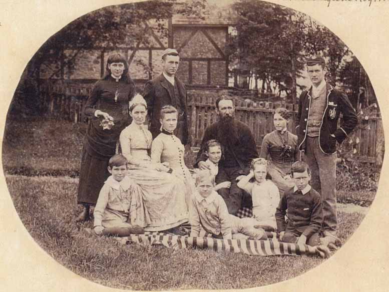 In Alert Bay, Mike met someone who had gone to the Girls School and Suzanne Lee, Mike said she said it was just wonderful. And that made me feel a little better. Even better. In 2004, his cousin Bob Morris, visited the sheen walk School, which is the one that Reverend Wilson started. And it's now a university Algoma University. But it does have an Indian name as well. Bob said he was never so welcomed. They didn't want him to leave. He was welcomed as Reverend Wilson's descendants. And Mike Maurice and his wife were invited to their 2007 reunion. So now I will leave all that behind, except very quickly to tell you that there's a really good book called unsettling the south settler within if you happen to want to know how to process this yourselves. Okay, here we go. I'm indebted to David knock who's a researcher, he discovered something really important during the summer months of us as Reverend Wilson love it. During the summer months of 1891. From March to June, a series of four articles appeared in the Canadian Indian Franc, how do I go backwards? If you remember, the first slide doesn't need to go backwards. There we go. It appeared in the Canadian, Canadian Indian under the pseudonym of fair play. parallels between EF Wilson and fair play, I will not go into the details, but I can tell you it's absolutely convincing arguments that David not presented to show that he thought that Reverend Wilson was the writer under the pseudonym of fair play. I'm totally convinced not only by his evidence, but by knowing Reverend Wilson in the way that he wrote, even the way stuff. So Reverend Wilson was a very outspoken person, I'm amazed that he would take on a pseudonym. But I have now learned why political is necessary for his own survival. It's why he came to Salzburg, Ireland. So oops. So there they are in 1901, the grown up family with their grandchildren grown up kids when he came here with Frank what I pointed out