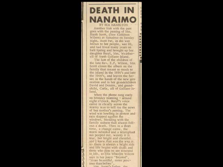 They aren't going to surprise you all from the outset was something slightly different than you were expecting I am first I am going to say that I would like to acknowledge that we are meeting today on the traditional and unceded territory of indigenous Coast Salish peoples. And the next thing, I'm going to introduce Reverend Wilson, and you will begin to understand during this presentation why I started that way. It is good form to start every meeting that way on Saltspring. I'm introducing to you today I'm introducing to you today, Reverend Wilson, but through the medium of the publications of David nock. I personally bring to David Knox understanding my own knowledge and enjoyment of Reverend Gerson salts, benign community builder, communicator, and great illustrator. Not to mention progenitor of so many subsequent hotspring Island families. This is his family. This is the 1901 Christmas painting that he did. And this is to show what a great illustrator is he's really good at doing portraits of people, I can recognize those people that often family and other descendants are probably likely to be able to do so also. If you want more details about who's in these photographs, and paintings, or any of the stories behind them, there's plenty more than I'm going to give you today but it would take five hours if I told them to. So I'm just gonna rush straight through just know that you can ask me either afterwards, or on another day. It's in a scrapbook. Referenced Wilson. Today, I need to talk about Reverend Wilson's courage, his courage to try to change what looks like it can't be changed. Now Reverend Wilson, generally speaking, lacked serenity, even though he was a reverend, and above a lot of things that before he came to Salt Spring, it was about the negative effects of Indian residential schools being run away the government and churches were hell bent on running them, that his Serenity was lost. And what he was taught speaking out about to change it. He was a church man himself. And it could be said to have started the very first industrial residential school. And you could even be said to have an increasingly run it with the damaging attitudes that he was later to battle against. Well, the poor man failed in his battle, he burned out he collapsed. He was not listened to. And he was in a way Shut up. So he learned to let that go and come to Saltspring Island to separate himself from a duty of care to the First Nations that he called Canada's Indians and apply himself as an Anglican rep. Rep. Anglican Rector instead was predominantly white parishioners, while also returning to his first love, which was agriculture. He built up and found the land which is now known as the golf course just across the road. And he was a key player in the reestablishment of the Saltspring Island farmers Institute, and its annual Fall sales. In fact, it was in large part due to Reverend Wilson that we are in this hall today. He was part of that committee that voted to make the first community hall on Saltspring Island. I've always loved him, because he's a community builder, and I love community and community building. Now I switched from that to read you something stated by Phil Fontaine. I don't know if you are aware, as aware as I have been of late of the Truth and Reconciliation committee going around Canada to listen to the voices of the survivors of residential schools. But the person who started that is Phil Fontaine. He was the National Chief of the Assembly of First Nations, and he successfully negotiated the Indian residential school settlement agreement, part of which includes the Truth and Reconciliation Commission. The point of it would be to have a financial contribute contribution of more than 5 billion to help survivors to survive With programs for them that they will call healing programs. That happened in May 2006. And it all came about because Phil Fontaine himself revealed to the world that he had been abused in a residential school. What he stated to the Cooper island group, we oh sorry, to the north of Saltspring Island, there is an island that used to be called Cooper Island and is now renamed to Pelican Island. And there was a residential school there. And to my distress, I have found that it is one of the worst with some of the worst things going on there for a considerable amount of time. There is a priest who has been to jail for three years and come out again, and he's was then in court again, Cooper Island, people were taking him to court again. And then they just said, we've had enough of this, we can't stand it anymore. We can't do it. So he got off with that second lot. If you look in the records of his career, the time that he was in jail is called absence, leave of absence, that's online. So what Phil Fontaine said to the Cooper Island survivors, when they decided that for their healing, they would go back to Cooper Island, is that everything that we learned, everything that we heard about our community, and about our people was negative, the only way we were going to succeed was to become like them, to acquire their values, to accept their spiritual beliefs, their spirituality, to speak their language. And that's what the residential schools were all about. They were designed to assimilate our people into the mainstream. And they understood that the best way of doing that was to remove us from the influence of the family. That's why they put us away for 10 months of the year. That's why That's why they denied us our language, our culture, our spirituality. And that was at a terrific cost to our people. And we are still paying the price today. We are paying that price today. And we will continue to pay the price for some time to come. Unless, and I say unless our leaders decide that healing is so critical to the future of our people. And that healing means coming face to face with the whole residential school experience. Phil Fontaine was concerned that the money that he h