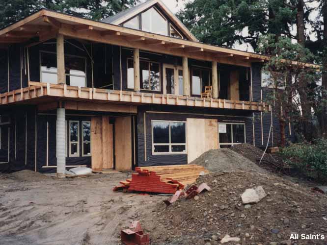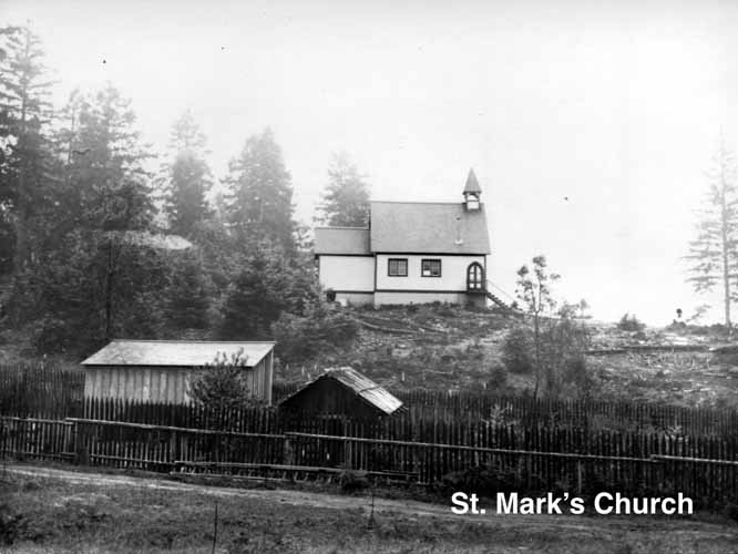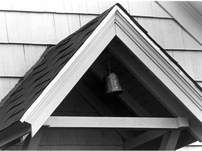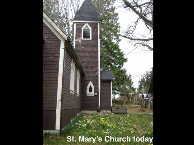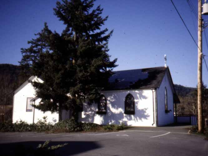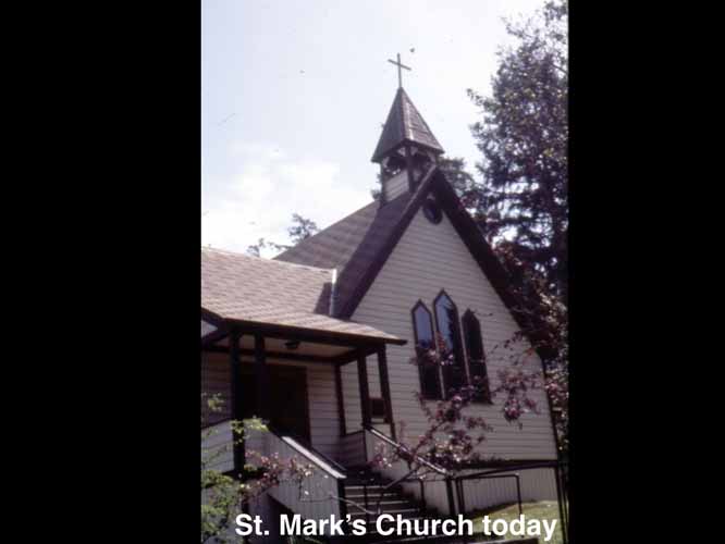 Jane Morgan, who is or was Tom Toynbee, his grandmother appears to have been the major thrust behind this project. The reports indicate that she drove her horse and buggy from one end of the island to the other, visiting parishioners and obtaining funds from them. She raised a total of $650 which was what was needed for the construction and they built our little church now On the color plate we had at the beginning when we were sitting just looking at the wall this little church is down in the lower right hand corner and I want you to take note of the woodwork up on the top of the gable there and the little extension here switch say something later on the
