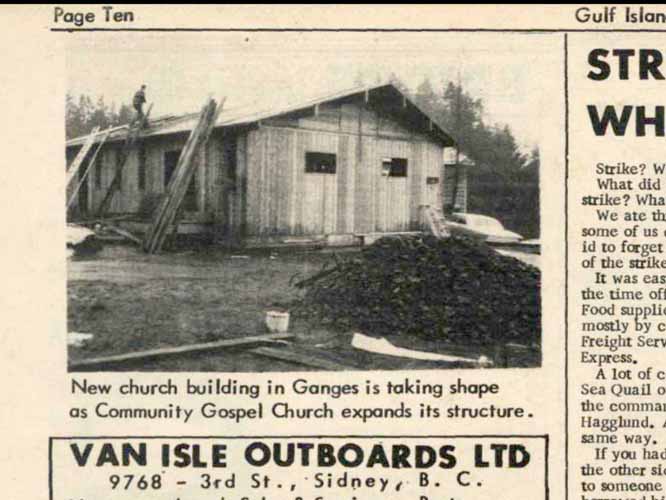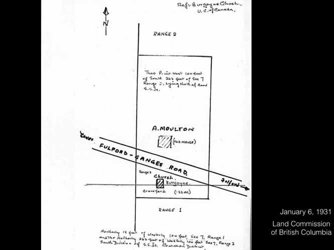 The United Church of Canada has two churches on Saltspring Island, Saltspring. Island, united on Hereford Street, and the Burgoyne United Church on the Fulford, Ganges rope. And that's down in the Burgoyne valley now, we're one church. We have two buildings, but we're one church. And if you want to find out a lot more about both of them, this will be on the Archives website, along with the photos I would take. And I think it's worth reading. I've read it several times myself, so Reverend Robson, he was a bit of a person who liked education. And he had encouraged the settlers to build a school that central and they built this log building just to the north of the central hall here. And then later on, they built a newer building. And that's the one that's