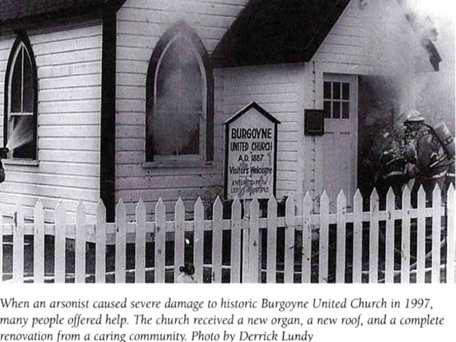I'd like to add one thing to that particular fire. Because it's so ironic. The fireworks lit under the Oregon as the United Church of poetry. And over the altar. Under the altar at the Catholic Church, both buildings were insured for replacement, which is why insurance companies pay. I don't know what you what the church is back in original shape, where you can imagine costs with the wainscotting. Finding a Bible of the same vintage getting the pipework or a pump organ, cherry wood and having it all restored. That was a huge, huge expense very. Finding the arsonist was never charged because the driftwood rented his picture before he was charged to court