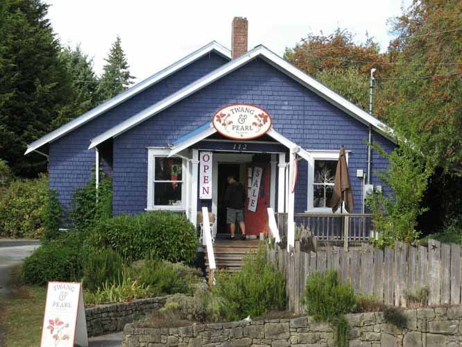 lot the church has moved over to a lot at 120 Hereford and that building is now the yoga studio. And it was donated by again Jane Moen. The property was a contract was awarded on March 16 1926 to Arthur Betancourt for $495 to take the church apart and move it board by board into Ganges and he enlarged it as well. And the work was completed in September 1926. On December 20 1928 a small house and lot were purchased that 112 Hereford and that's presently playing in Perl from a Mr Rankin's for $800. Plans for Parsons were prepared and the contract was awarded in 1929 to JH Betancourt to incorporate the little house into a full scale parsonage. In 1951, a decision was made to build a new church the building at 120 Hereford or Level One was put up for sale and the Canadian Legion made an offer to swap two lots they owned on the south side of Hereford plus $800 for the church and lot and if you look at this picture go back to my comment earlier about the little building and the framework up in the gable and the little entry that says what the building really looked like when it was on Hereford.