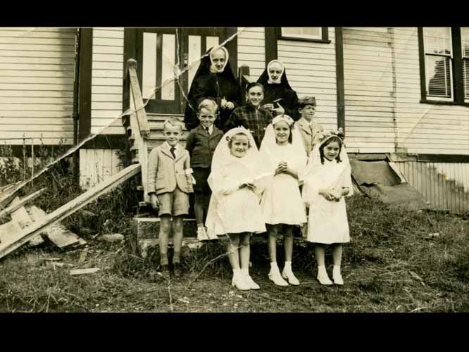 I must actually begin with an admission that we've not done a terribly good job of documenting our early history. And many people have assisted me with this presentation. And I'm really grateful for the help they gave me. The history of the Catholic Church on Saltspring Island has a lot to do with its roads or lack thereof. St Paul's was built in Fulford harbor because in the 1880s most Catholics had settled in the south end to bribe private chapels offered services in the other remote areas, one in the Soviet space and one in Blackburn road. record show that father Don Kaley, the missionary priest who oversaw the building of St. Paul's Church set the first mass on Saltspring in 1878. In the private chapel on the second floor of Mr. Bitton courthouse in Vesuvius Bay. About 10 years later, Mr. Betancourt built the ark, which housed the chapel. The building is still standing today near the Vesuvius Bay parking lot. It's a private home, but that Bale is still in place. In His Will Mr. Betancourt left a piece of land for the construction of a Catholic Church and an annual income of $600 for its administration. It was a very generous offer in the early 18 1900s. But it was very clear by then that Ganges was going to be the more central place of the island, and not really suitable for building a church in the Soviet space. The second private chapel was built in the home of Alan Blackburn. Now the Salt Springs center for yoga on Blackburn road. The Sydney review has increased a father sheelane saying mass there on a number of locations most of the time On the Saturday before or the Monday after the week they the Sunday Mass at Fulford harbour The house has an interesting history in its own right, and I hate to say it, but I think it would make a great presentation. Now onto Ganges, a good starting point, which is the story written in 2005 by Dorothy Dodds, and Dorothy is on the site it's a story of how the Catholic Church was acquired. Dorothy's family the jives were very good friends of father sheelane and so it is quite likely that they did actually have this story told them. There are a few inconsistencies but I wanted to repeat the story, as Dorothy recorded it in 2005. Father shaylen lived in the priests residence next to St. Paul's Church in Fulford harbor. So the sheelane was looking for a property for a Catholic Church in Ganges he foresaw that there would come a time when the church population would become too much for St. Paul's, and a church was needed in Ganges. He contacted Gavin Mola, the school board representative, and asked him how much he wanted for the old Ganges Elementary School House and surrounding grounds. Gavin mode, answered $500 But I have to have the cash by 5pm today. Father shaylen Hurry in his old Ford hurried to Fulford harbour to catch the launch transporting salt Springer's to Sydney. He barely caught it. After arriving at the Sydney dock he then caught a bus to Victoria. On his arrival he contacted the secretary of the Knights of Columbus. After explaining his mission and asking if he could borrow the $500 to purchase the former school. The Secretary explained that he did not have the authority to grandfather's wish, but he said I'll tell you what I'll do. I will loan you the $500 father accepted and began his return journey to Salt Spring. He arrived at the meeting place with Gavin moment a few minutes before the deadline. Much to Gavin's surprise father sheelane handed him the required $500 Gavin hadn't expected father to raise the money in so short a time but he had to keep his word. As Dorothy said God was on father Shimon side. South springers we're very grateful to father for his all his efforts, and they went nuts Salt Spring Ganges school became the church they named it St. Edward's church after father sheelane father Morris Lariviere arrived on Salt Spring in 1943. And he did much of the carpentry work on the old schoolhouse. To convert it into the church. He converted the classrooms on the main floor into the church and divided two small rooms into a dressing room and a small sitting room. St. Hans Academy passed on the Stations of the Cross and some of the pews come from St. Anne's chapel. And that is the story told by Dorothy dots. In looking for some evidence to corroborate with Dorothy story, our diocesan archivist assured me that the talented father sheelane was no stranger to acquiring buildings, his list of acquisitions including a building on Cooper Harbor, Cooper island in 1913. And in 1929, he scored a school building from the Indian department for Saanich. I think we can safely say that he probably did get the Ganges schoolhouse, as Dorothy testified, and the $500 in the general ledger dated 1916 to 1943. A credit of $700 is noted. And then in 1942, there's a transfer of $400. These are the only two three digit transfers in the 27 years that the church records were kept. So it's safe to assume that they were for the purchase of the property. The Add on building by Father Shilling and the renovation of the building by father in law Revere. The church was opened and blessed on August 3 1941, with the name Our Lady of the Rosary. But since another church in the Victoria diocese already had that name. The church came to be known as Our Lady of Grace. In less than three years the church had three different names. This photograph is actually taken a little later, but it does give you an idea of What the church looked like after the initial renovation. The first photograph we have of Our Lady of Grace was taken in the early 1950s. by Roger Kerr from we see in addition across the back of the building that was used as a parish hall for meetings. Apparently this is the old building that was added to the back of the schoolhouse that Dorothy referred to in your comments about a small dressing room and a small sitting room. The addition was large enough to accommodate a large meeting room for the building stays as a school we're not over. In 1949 1950,