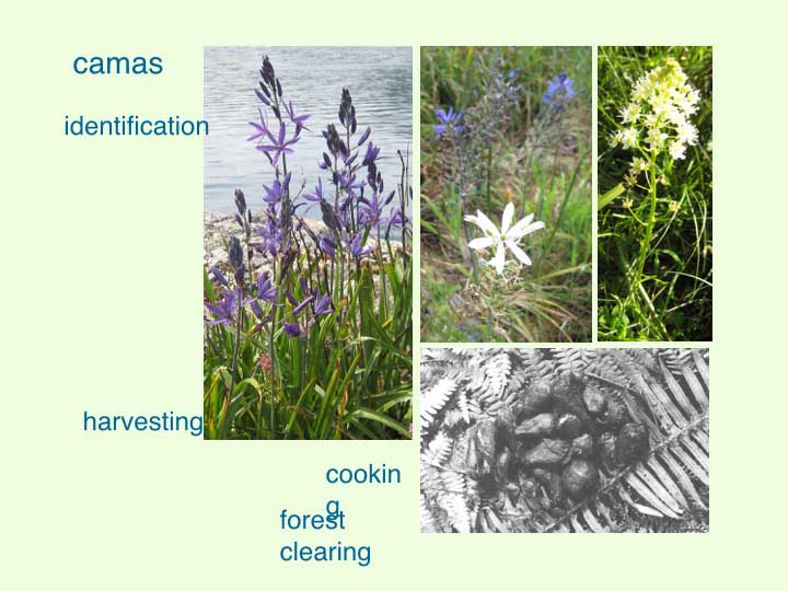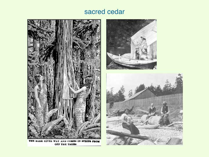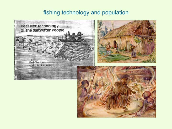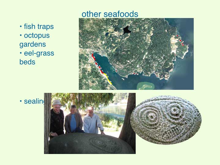 They also built fish traps I don't have a picture of a fish trap. They're kind of like a clam garden. That with bigger boulders and rocks at the shore that is building a big tide pool to catch fish. Octopus gardens this was new to me. They built them mountain rebels just below the low tide. So the octopus would settle in and make it home and didn't realize that they were going to turn into a meal ceiling of course, Fulford Harbour was was the Saanich people's really big ceiling place as we know from the seal rocket Drummond Park, it used to be at the entrance to Fulford harbour near where the ferry terminal is. So this is this guy that the sanit peoples have a good deal of difficulty with the rock being moved in the way it was being the way it was moved. But anyway, there it is. It does remember, Thomas has a huge impact on the landscape. They they for their food value. It's most commonly written that they gathered them by the many because they didn't have any other carbohydrates in their diet. They didn't have names such as we do, but there's not a stitch of carbohydrate in these bulbs. They're an onion, and their onions are a sugar. That's why we carmelize them their sugar called insulin. And these are bitter little, little guys. I guess I haven't tried some they have to be picked cooked from 12 to 18 hours before the insulin karma license and is sweet. Now, the trouble with them is their identification because every so often this is late in the season, but all of us know that one and 1000 are some numbers white, which is all very nice. They're a wild hyacinths they're, they're beautiful. They're purple, occasional white. Yay. But we have the death cameras. And when they were harvesting these bulbs, they would pick them after the flowers were gone. So how would you know if there was a death? Camus one bulb would kill you for sure. So how would they know that you shouldn't be picking that one? Well, the only way to know is to cultivate them. I have a lot of cameras going around my place. And Gary, I poke nose and I said to my husband a couple of days ago, I'm gonna I'm gonna pick some and roast them for 12 hours and see what they taste like. And then I thought, you know, what, if just by chance, I missed seeing a Deaf Camus, I tell you, you'd be really careful about harvesting. So what did they do? Well, they cleared the forest and it was mostly the coastal Douglas fir and they burned it off. Well, that talk about a huge impact. And they also did other diggin and enhancement of the cedar groves. And we all know that culturally modified trees if you go to the sale reserve, bless them for allowing us to walk on their lab. You can see that they're harvesting again from there in a way to save the cedar. So when the first white guys came, they said woohoo, look at all these cedar we can get these chopped down and made into shingles and shakes and salmon casts in no time they did it in about 510 years. Those cedar had been at been closeted, and carefully looked after. For hundreds of years. They weren't. I mean, they started there by chance because it was a good place to grow. But they were such glorious groves. Because the First Nations people were making sure that they were and so they of course, both their clothing, their hats, they made baskets, they had to canoes, they had a paddle. The shelter shown here is actually made from CAP tails, it said, a temporary summer shelter. And this is the sale reserved for those of you who go into all the wonderful archive photos that they have here. I was just floored. I love it. This is the sale reserve, you can be sure that the longhouse was there until the 1920s with cedar xpect that fence was cedar. On the left, we have Mary salt. And on the right is her husband Charlie with an unidentified visitor and between Mary and Charlie salt lived on that the reserve until 1923. There's a story that they were murdered. And that's why they left I think there's a different story going on in 1920, the federal government forced all First Nations people off all of the Gulf Islands can even including their reserves, and they had to live on the Saanich Peninsula in 1920, and 21. They were rounded up, they were forced away. They were not allowed to live on the Gulf Islands by 1923. My bet is that the government agent can Indian agent came around and said, You've been defying me for three years you are so gone from here. So another story is they went back to her home reserve, which is the couch and so what about fishing technology and human population? Well, I've heard in 1492 when Columbus sailed the ocean blue that about one quarter of North America's population were in the Pacific Northwest. It was because they had all of these harvesting. They were farmers, they were you know, they were managing the land that had huge impact on it. And the really biggest impact that they think they have looking to the middens the population about 1000 years ago just went crazy. Well what happened, and that's when they figured the reef net was invented. And it's a truly clever way of catching fish. And you can see at the front of the reef net, that there's a fish escaping so that they were careful not to take them all, but because they didn't have a river to fish from. It was explained to me by the elders. I was working with the reef net turned the channels where the salmon came home into rivers. And they they had a very rich society their population was up they did live differently than we do. This is 110 foot long house from the package and family that the sandwich First Nation was all one people until 1920 When they were forced to form four baths So one of the families became the packaging packaging band. So this is from the 1930s, one of the remaining longhouses extremely rich culture. So they had time for to develop their culture. This is the same artists from 1936 and it's the same dance. What was the beginning of the end? What happened with the First Nations people? Well, s
