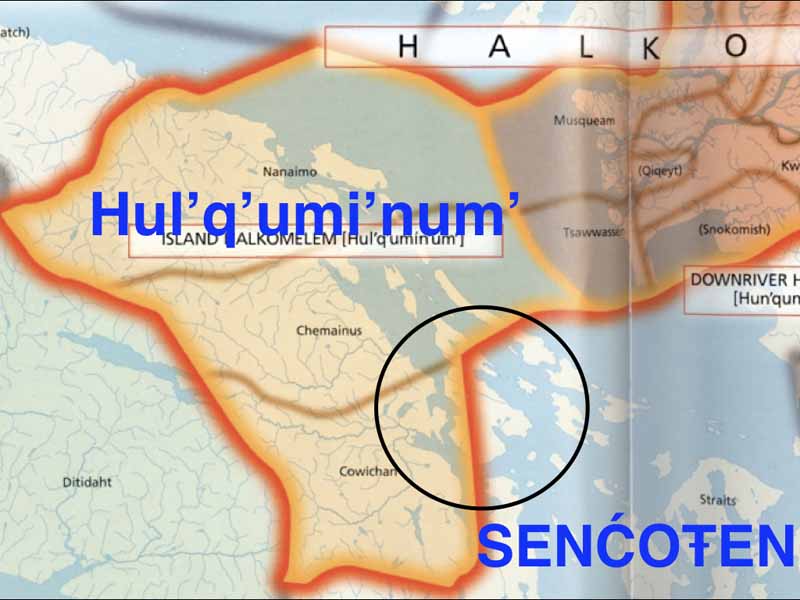 So, you know, I began interviewing people. Before I get to that, though, I just want to and talk about the names. I mean, we're and the native people who live here are part of the Greek Salish nation, if you want to call it that. It's a, it's a huge area that goes from the East side of Vancouver island all the way to Idaho, up towards, you know, Lilly area, or even further up to, you know, dog Creek, and then down to the Columbia river. This is a huge area the Salish nation. And in in this area there's about 25 different languages. And even in this area here we can see, yeah, some of the different languages, the different dialects of hokum.